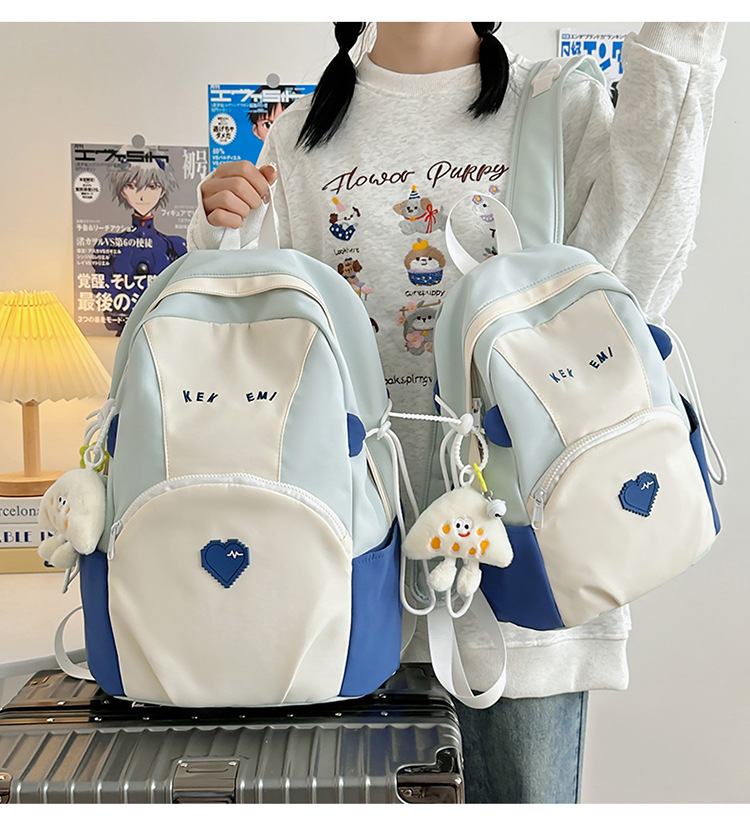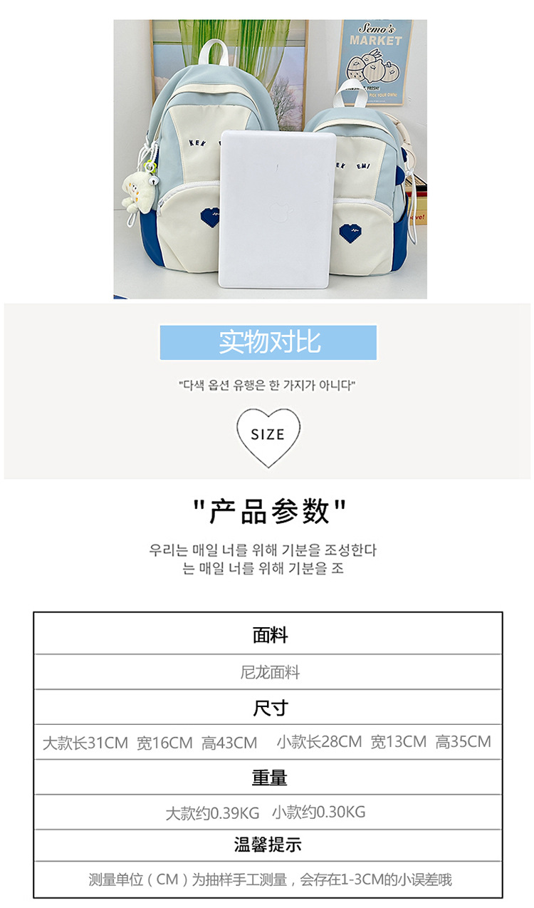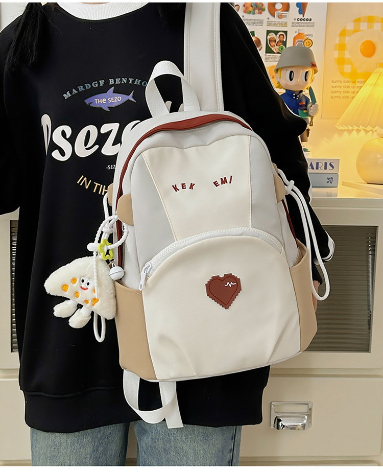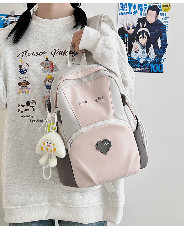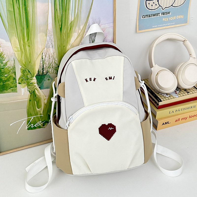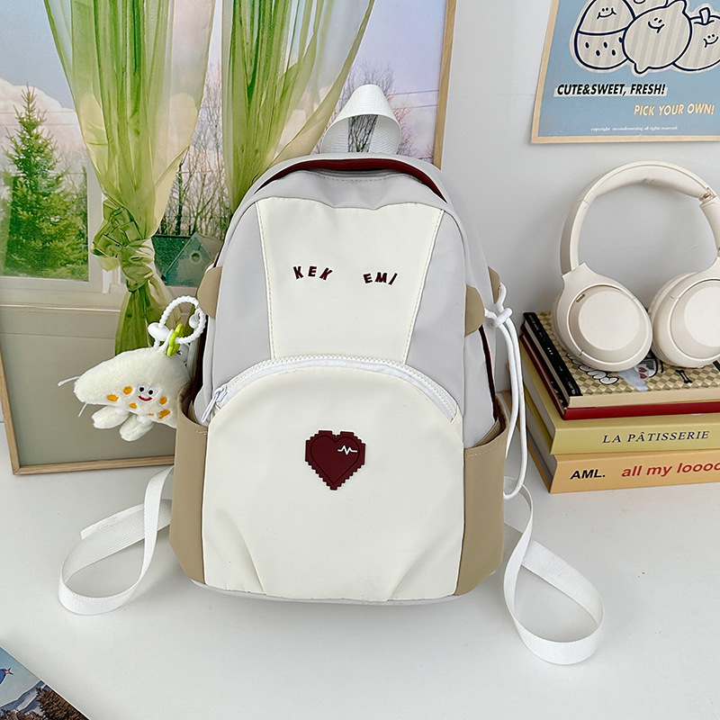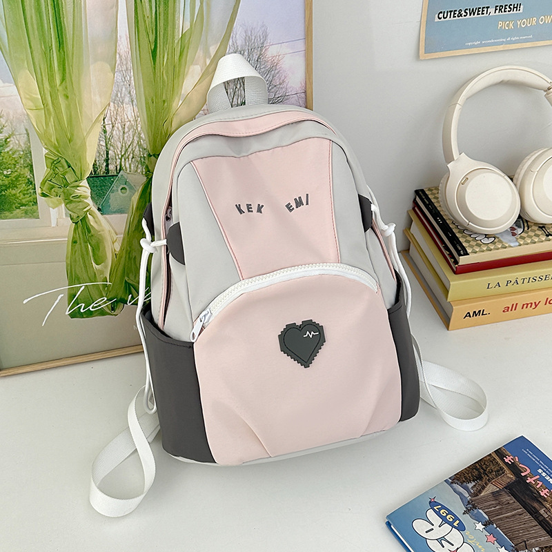 대용량 Schoolbag Ins 스타일 높은 미용 가치 사랑 대비 컬러 주니어 고등학교 학생 배낭 캐주얼 올 매치 작은 배낭