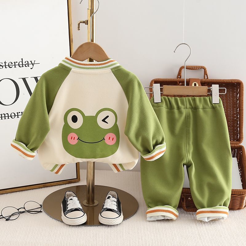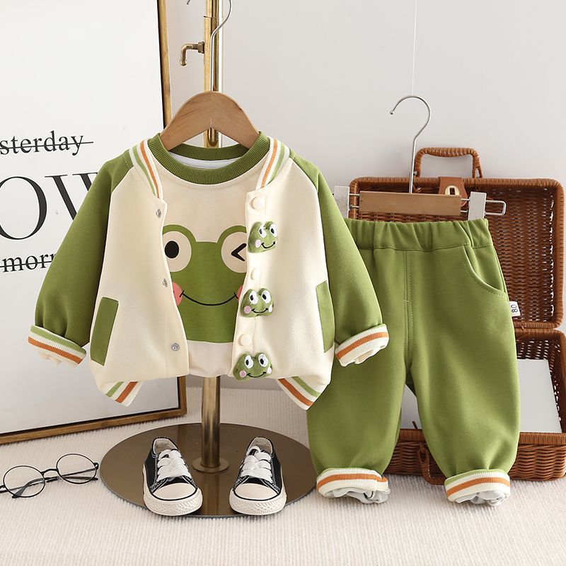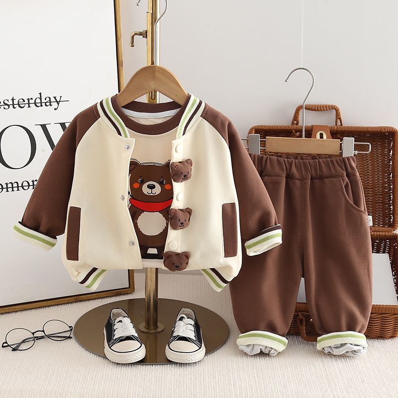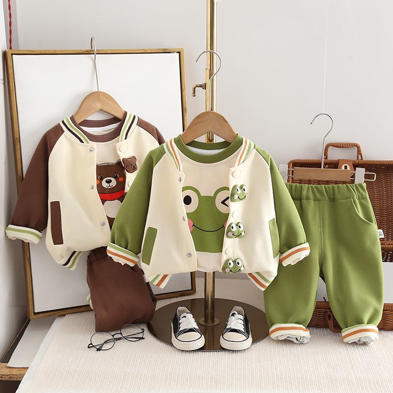 소년의 봄과 가을 세트 2025 새로운 서양식 아기 소년의 가을 만화 야구 세트 3 피스 베이비 붐스토어 가기