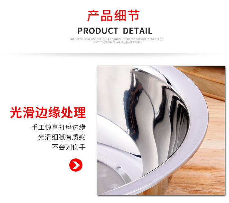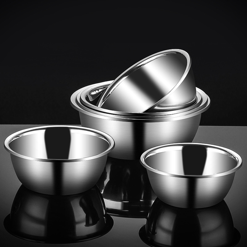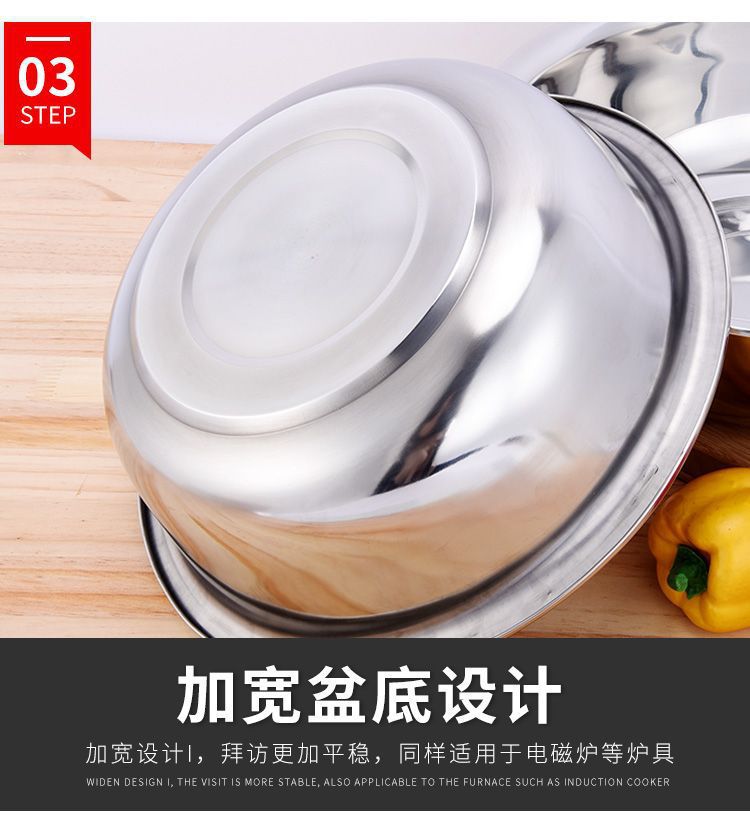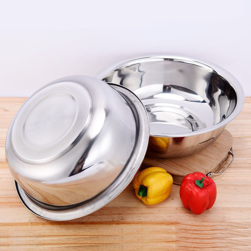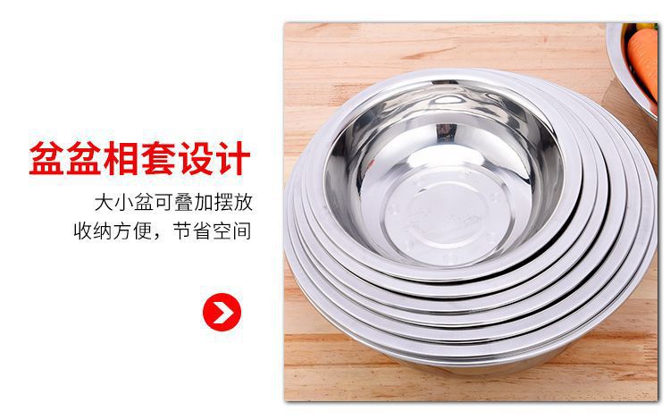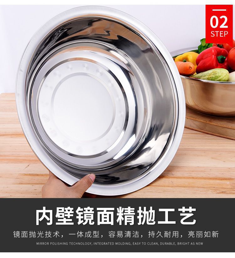 식품 학년 스테인레스 스틸 분지 가정용 주방 계란 및 얼굴 분지 야채 세척 베이킹 큰 분지 두꺼운 수프 분지