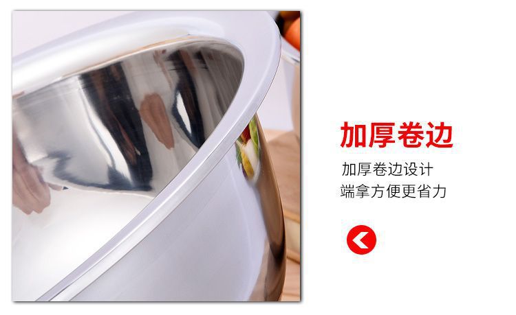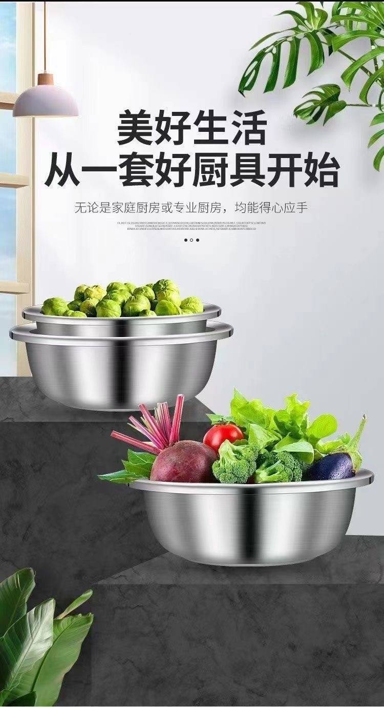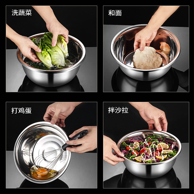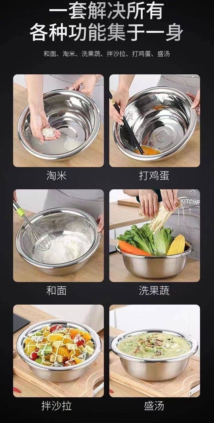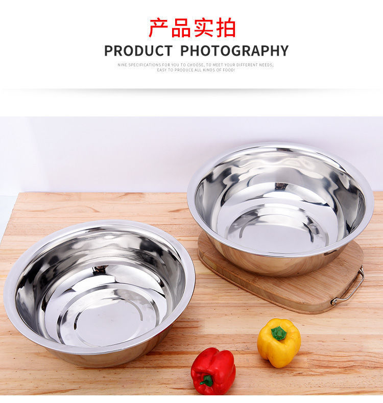 식품 학년 스테인레스 스틸 분지 가정용 주방 계란 및 얼굴 분지 야채 세척 베이킹 큰 분지 두꺼운 수프 분지스토어 가기