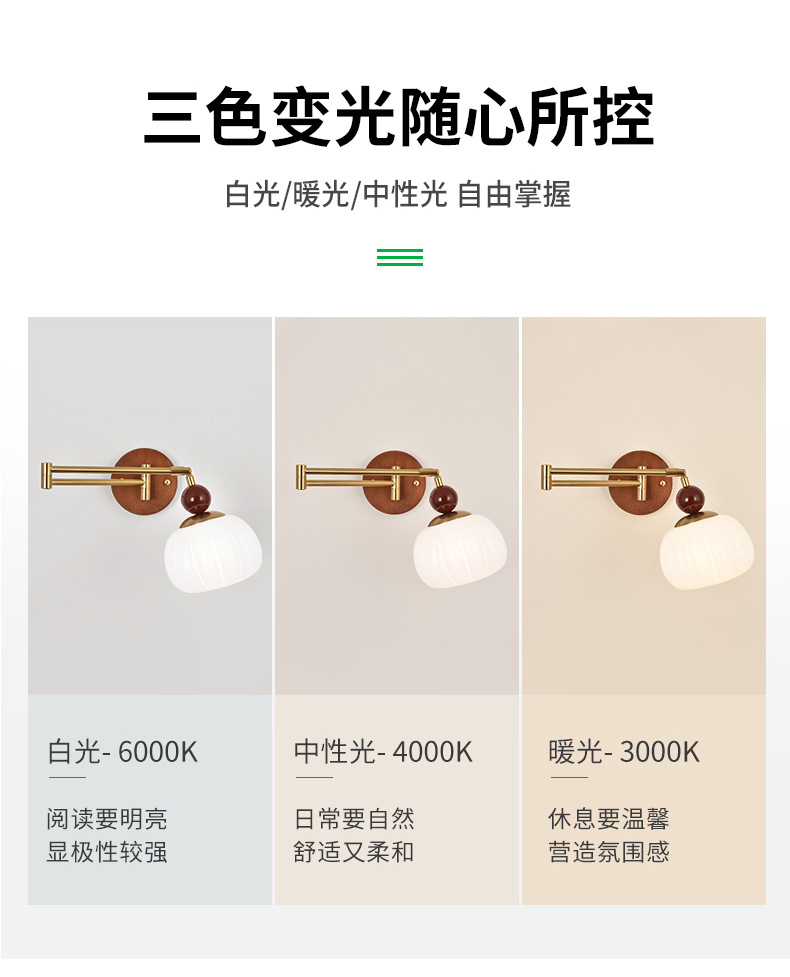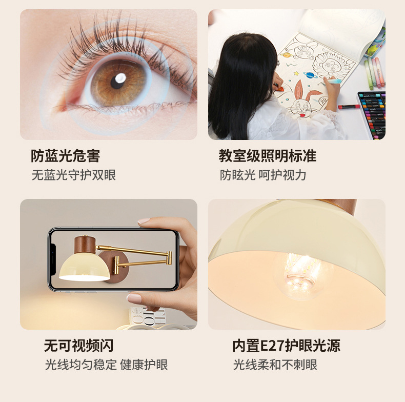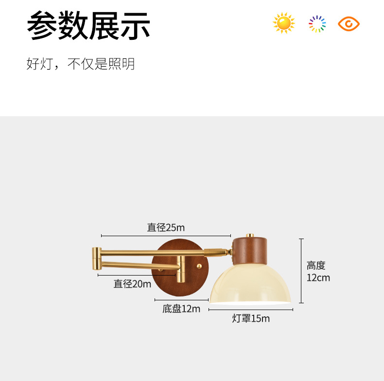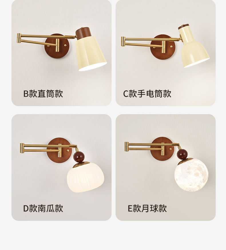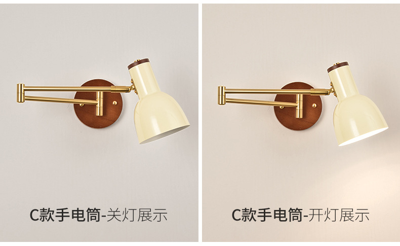 [엄격한 선택] 침실 침실 벽 램프 중간 고대 변위 가능한 로커 팔 접는 망원경 학습 및 독서 램프