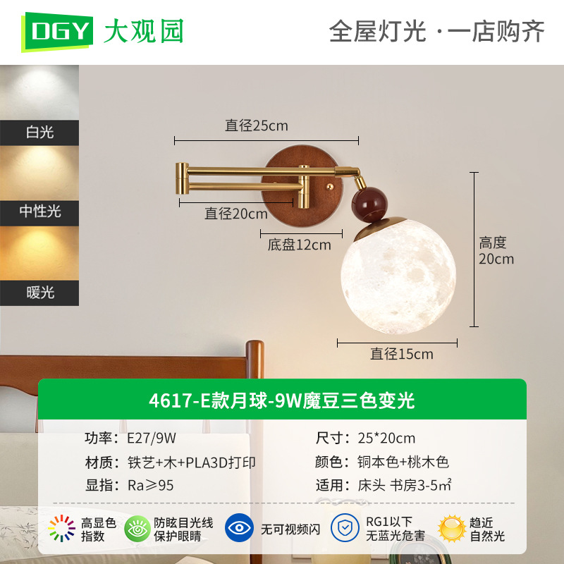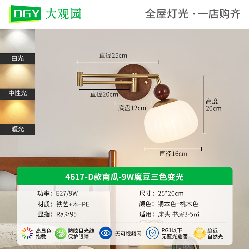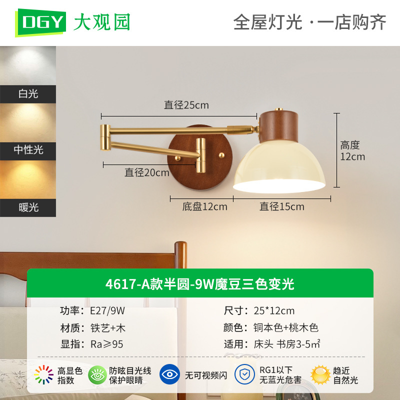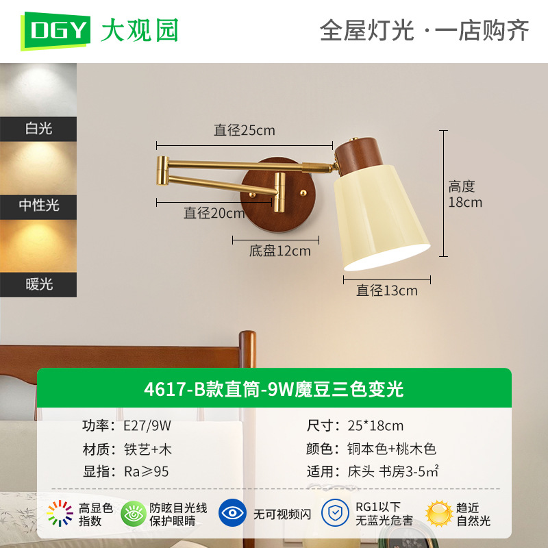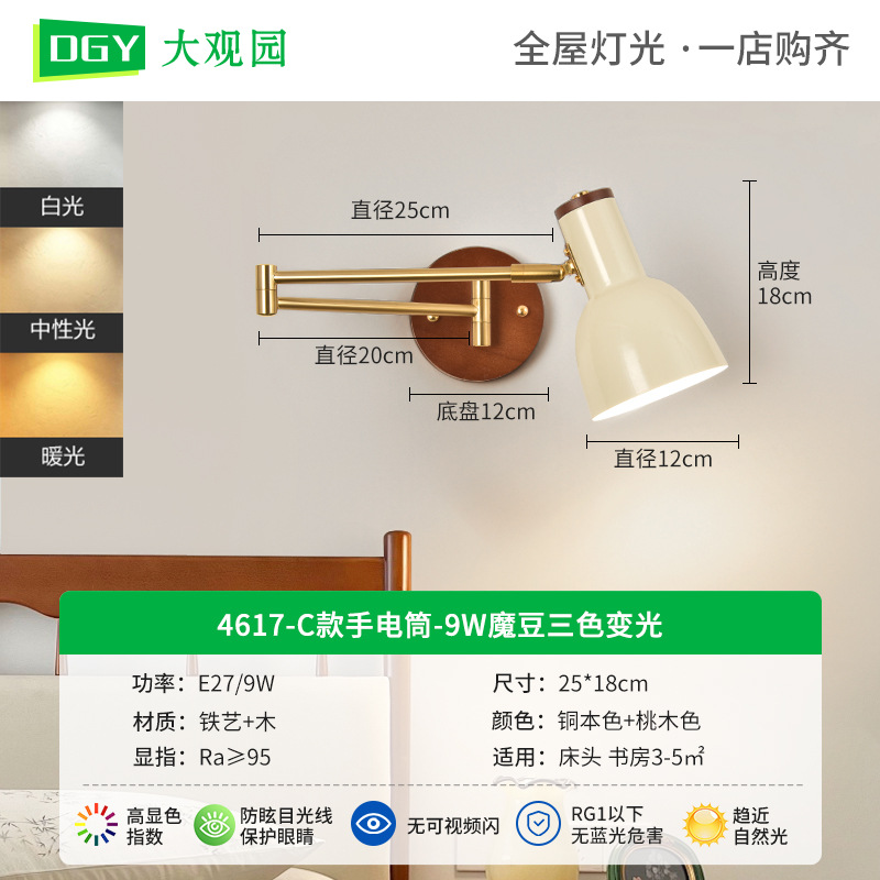 [엄격한 선택] 침실 침실 벽 램프 중간 고대 변위 가능한 로커 팔 접는 망원경 학습 및 독서 램프스토어 가기