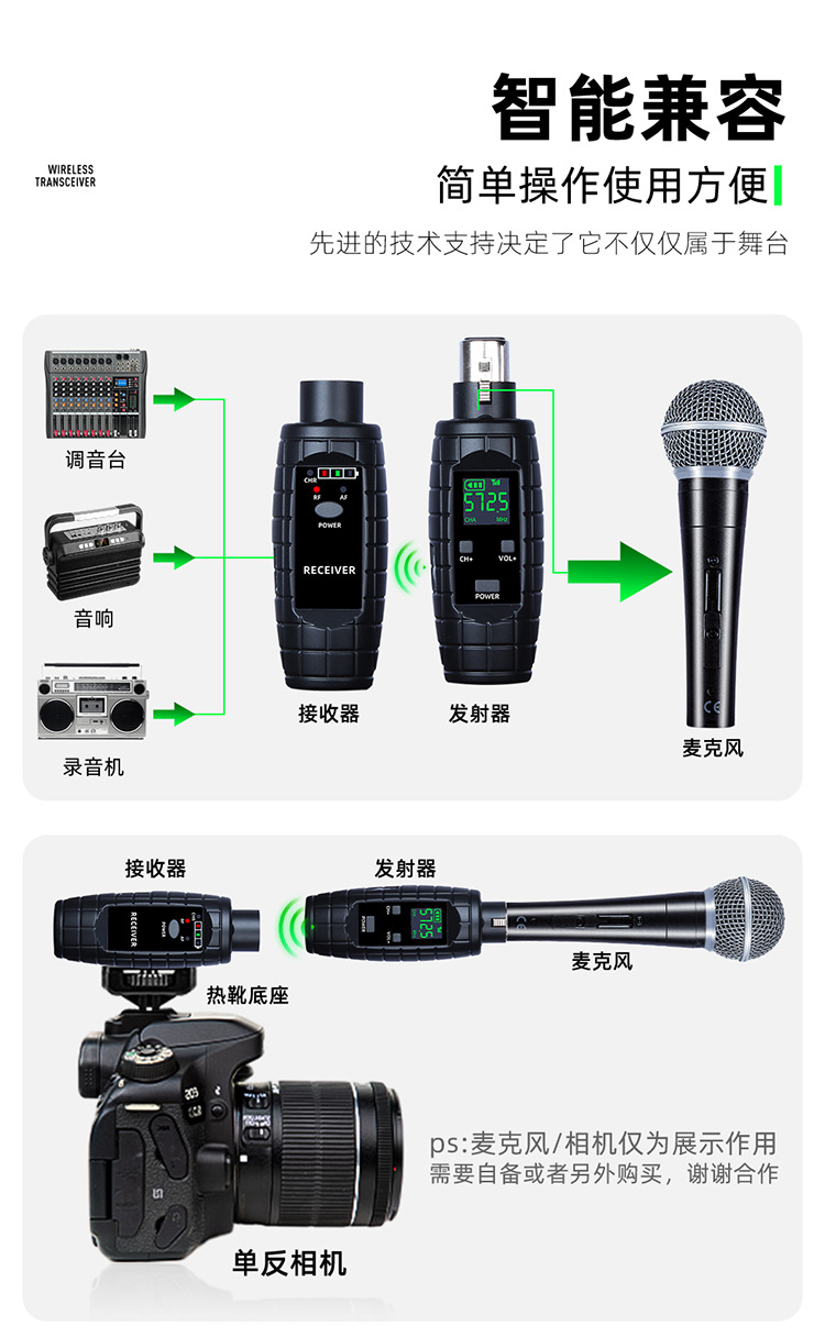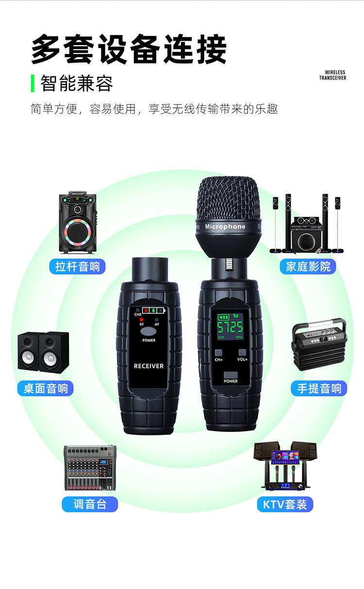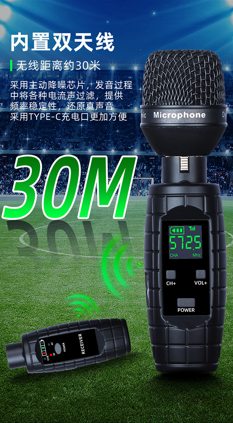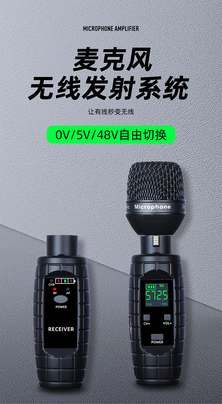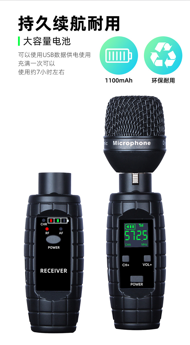 무선 UHF 수류탄 마이크에 유선 유선 휴대용 이동 코일 마이크/이동 코일 무선 전송 송신기 시스템