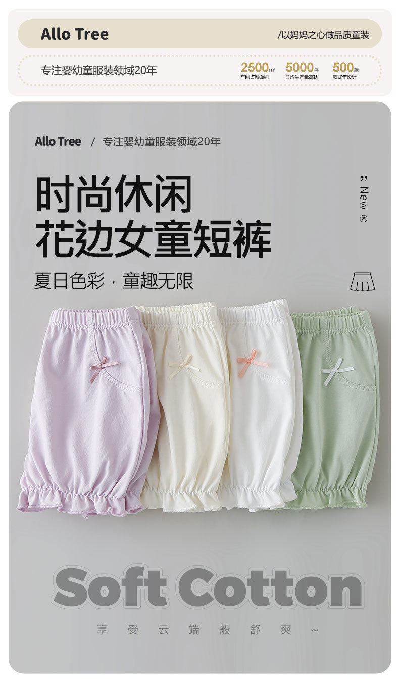 여름 여아 반바지, 얇은 알라바마 스타일 여아 안전바지, 루즈핏 꽃잎 반바지, 아동용 5부 바지스토어 가기