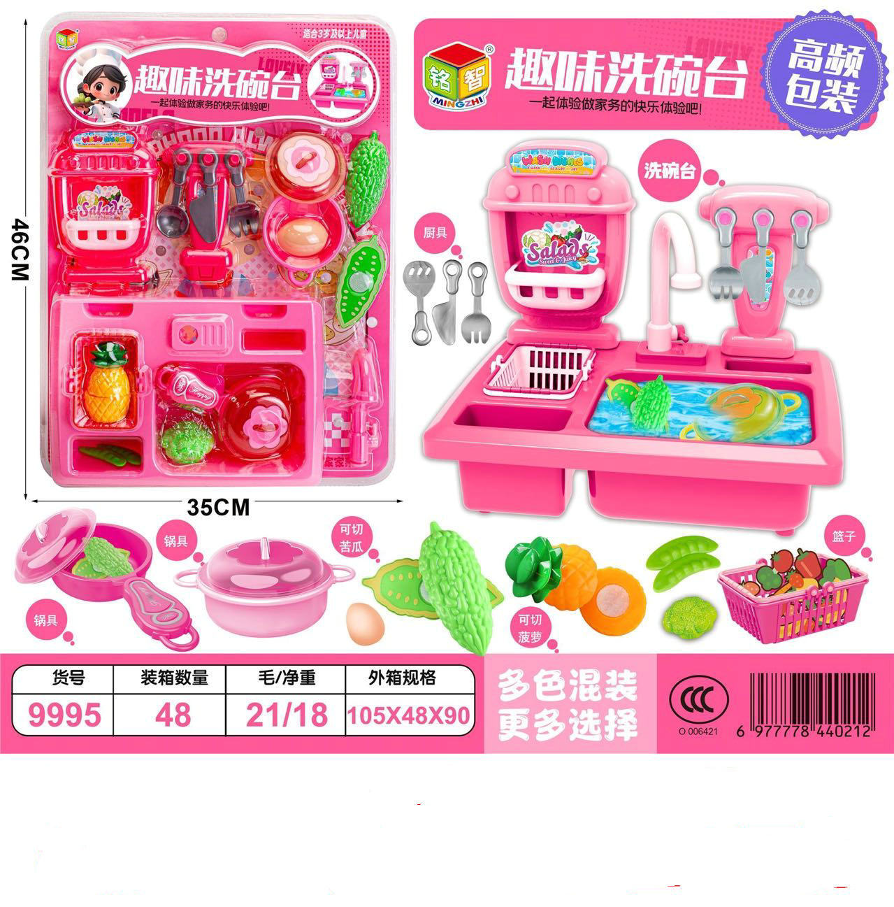 9995 재미있는 식기 세척기 어린이 주방 물 스프레이 식기 세척기 시뮬레이션 절단 과일 놀이 집 장난감 접시