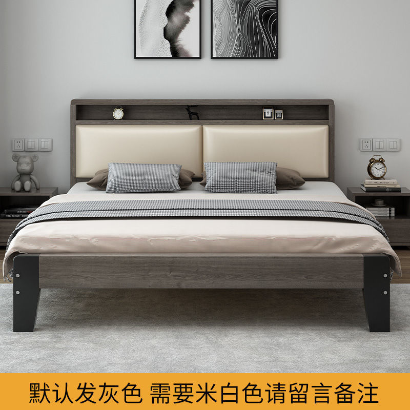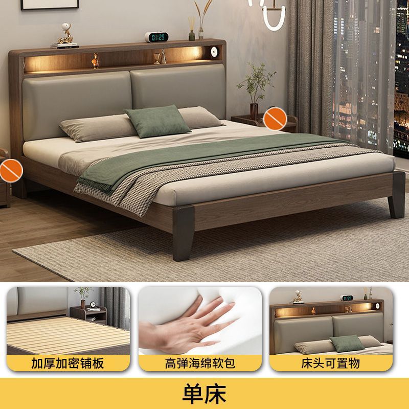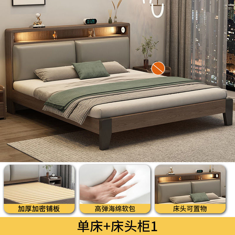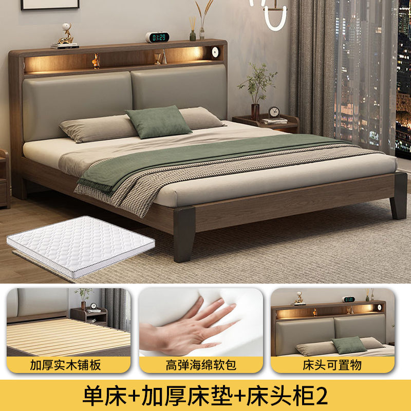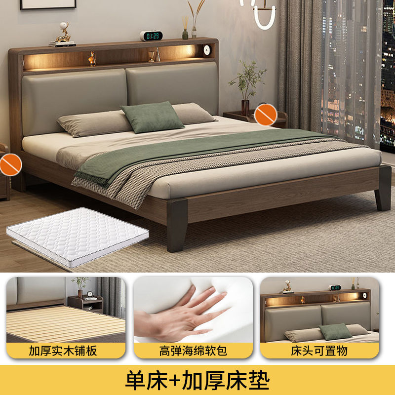 간 유한 이탈리아 소프트 백 솔리드 우드 베드 더블 1.8x2 m 마스터 침실 라이트 럭셔리 렌탈 룸 1.5m 싱글침대 홈스테이 1스토어 가기