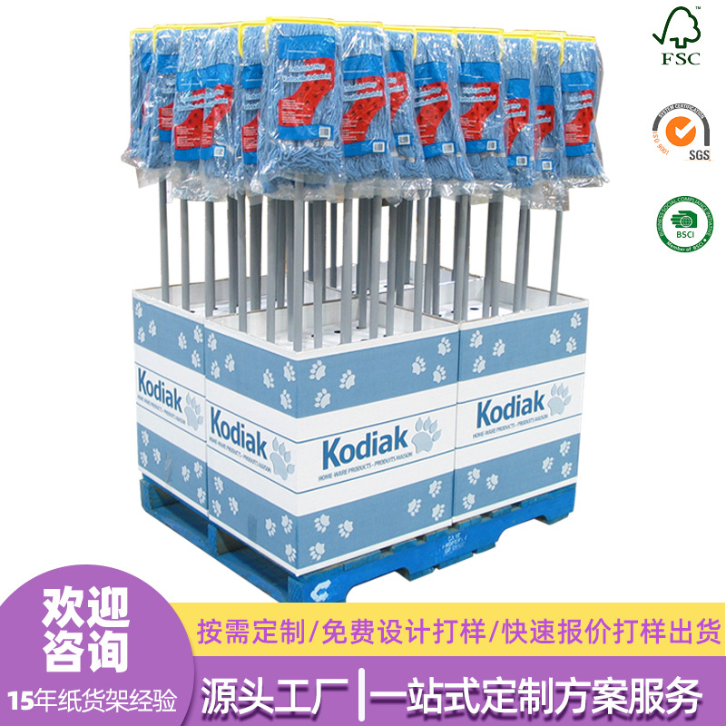 厦门纸展架纸货架商场超市拖把促销堆头纸质货架瓦楞纸展示架堆箱 |