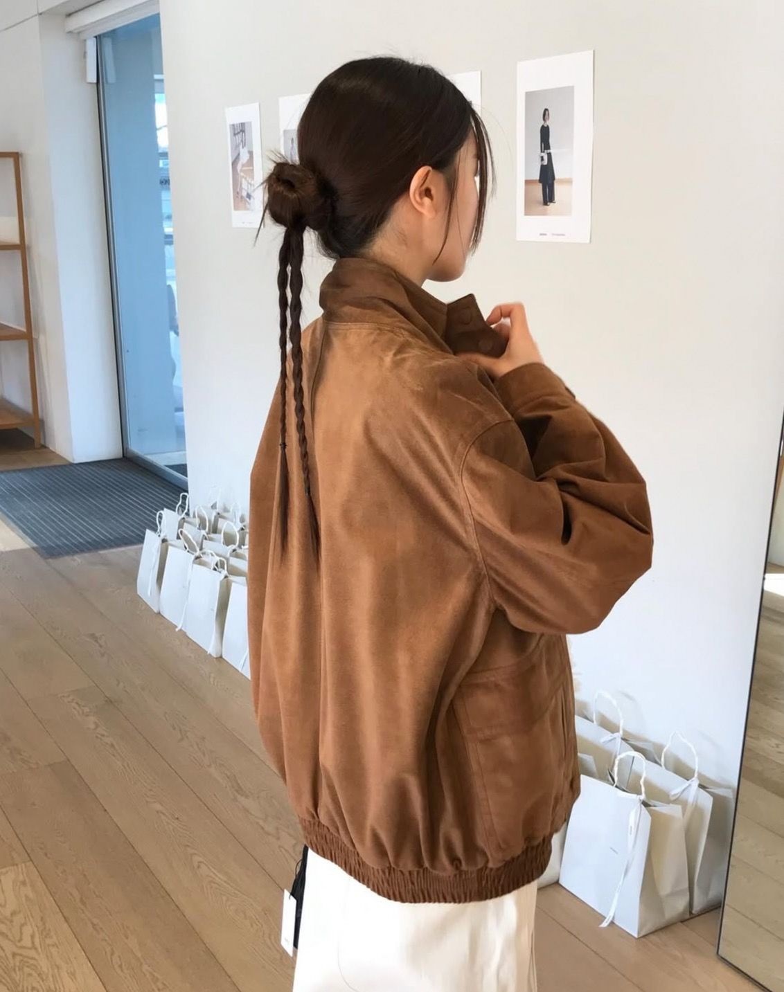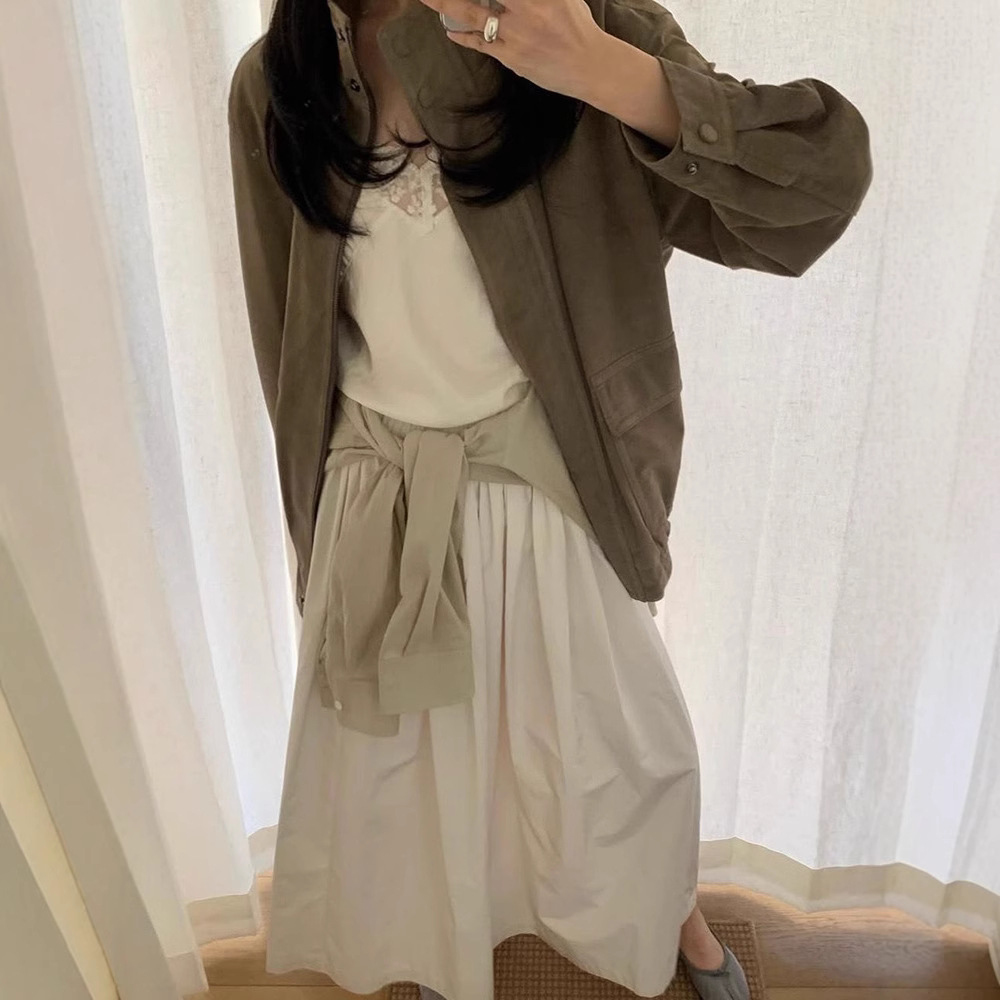 스팟 레트로 돼지 가죽 스웨이드 터틀넥 재킷 봄 여성 루즈 캐주얼 지퍼 코트 모노 *a스토어 가기