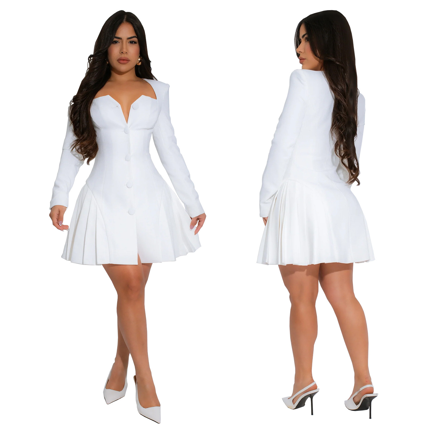C7263 국경 간 AliExpress 아마존 유럽과 미국의 패션 여성의 우아한 딥 V 긴 소매 짧은 원피스스토어 가기