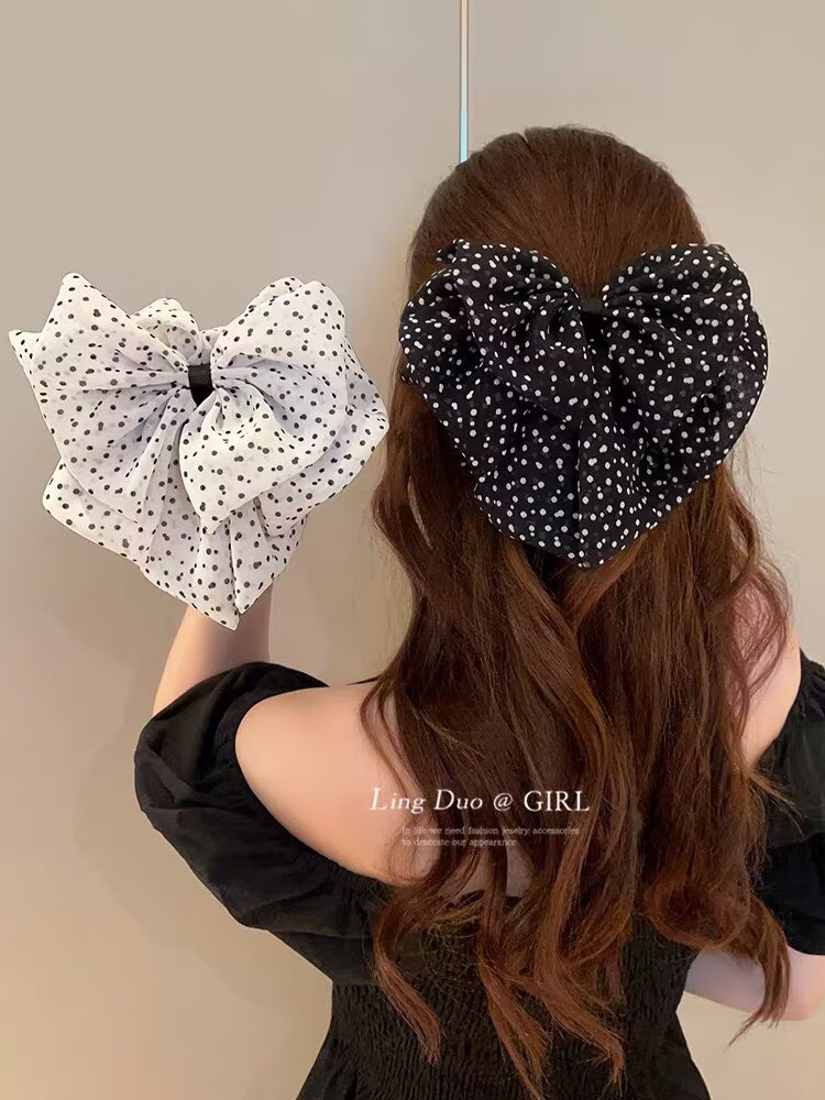 프랑스 복고풍 분위기 웨이브 도트 쉬폰 활 우아한 헤어핀 여성의 2025 새로운 헤드 디스크 헤어 그랩 클립스토어 가기