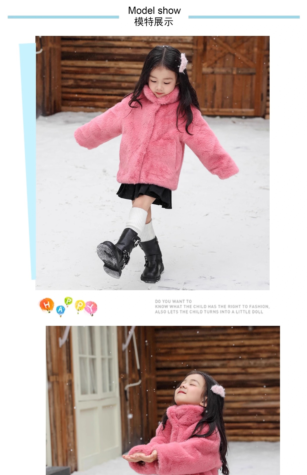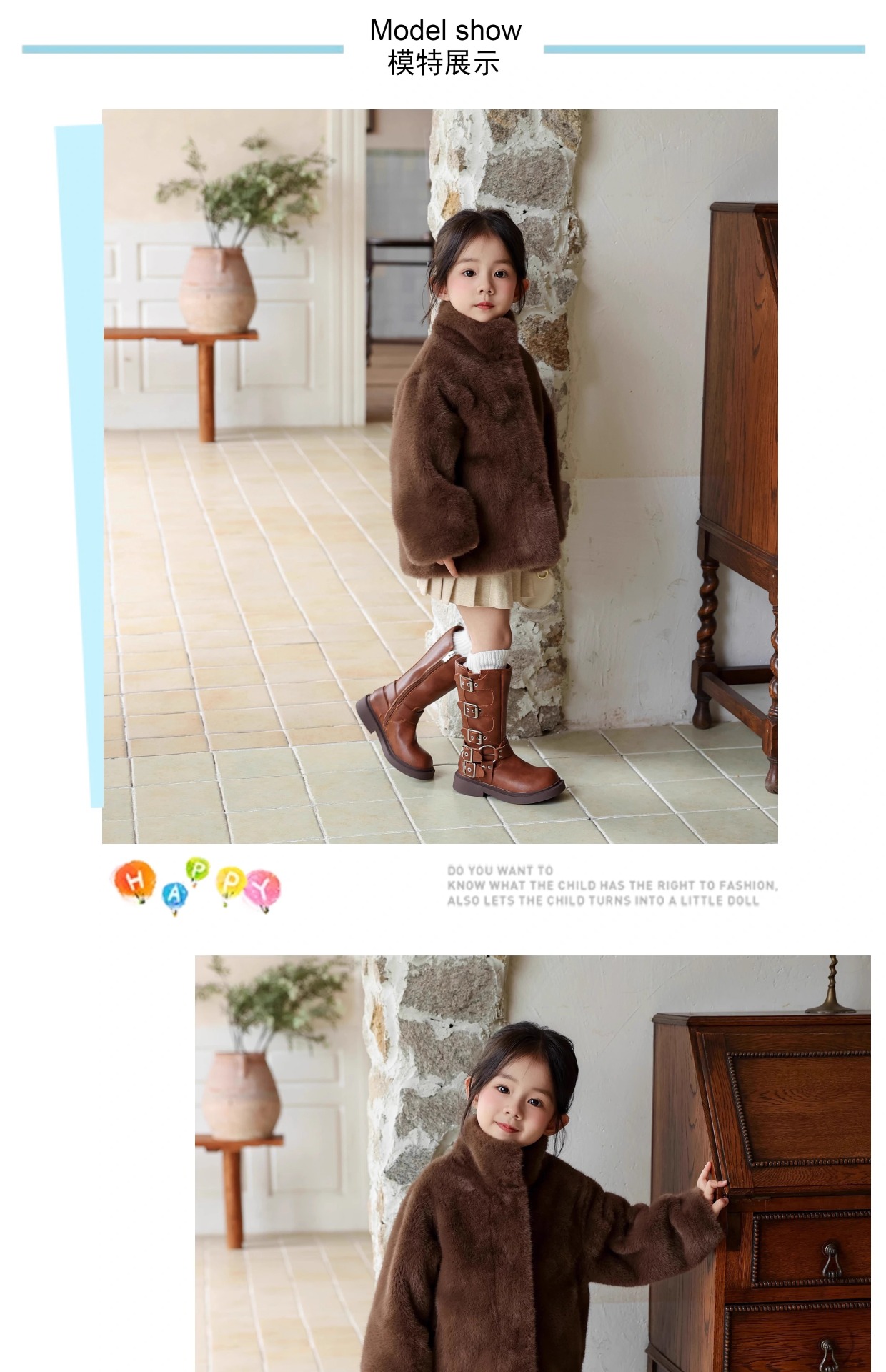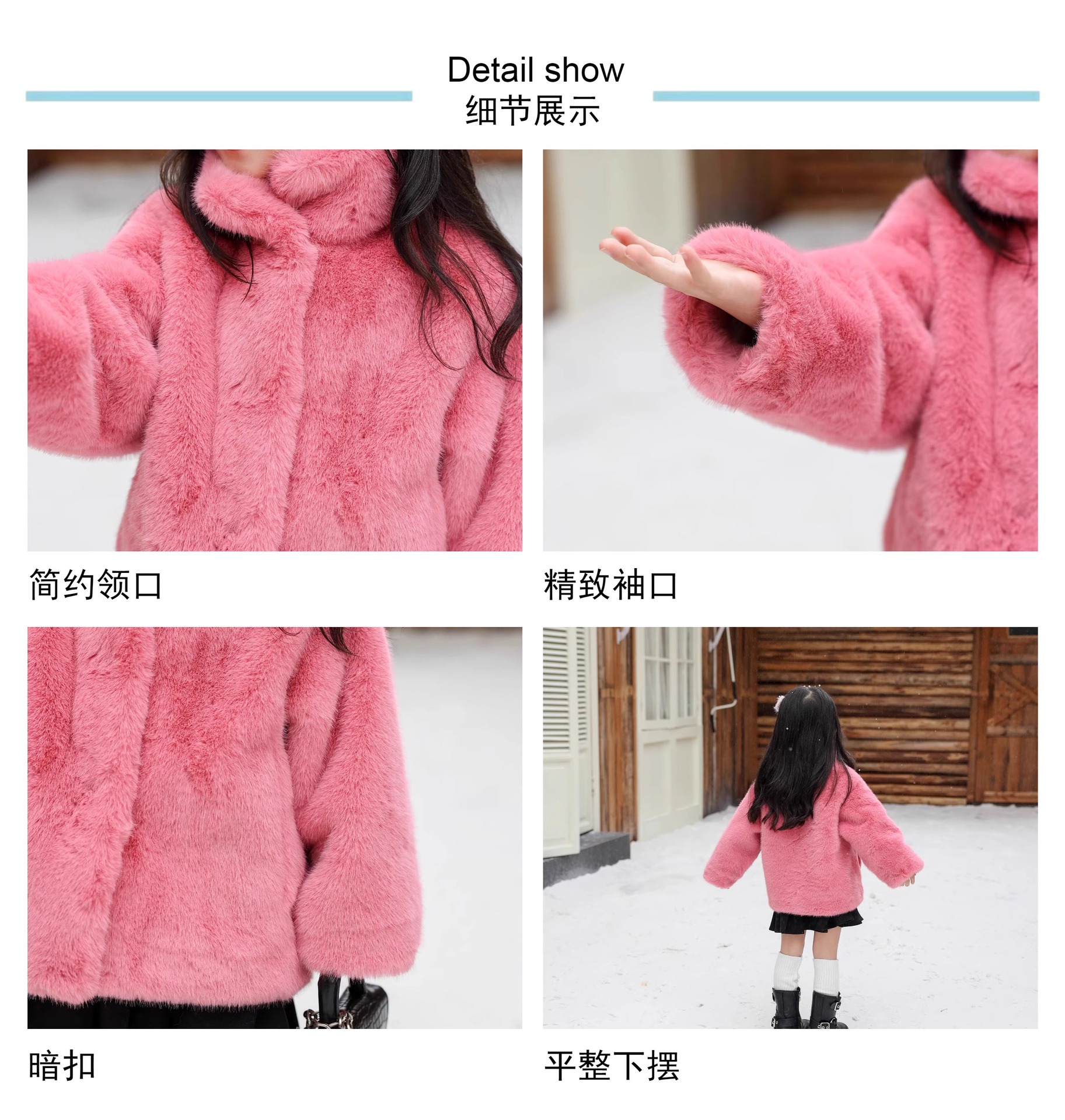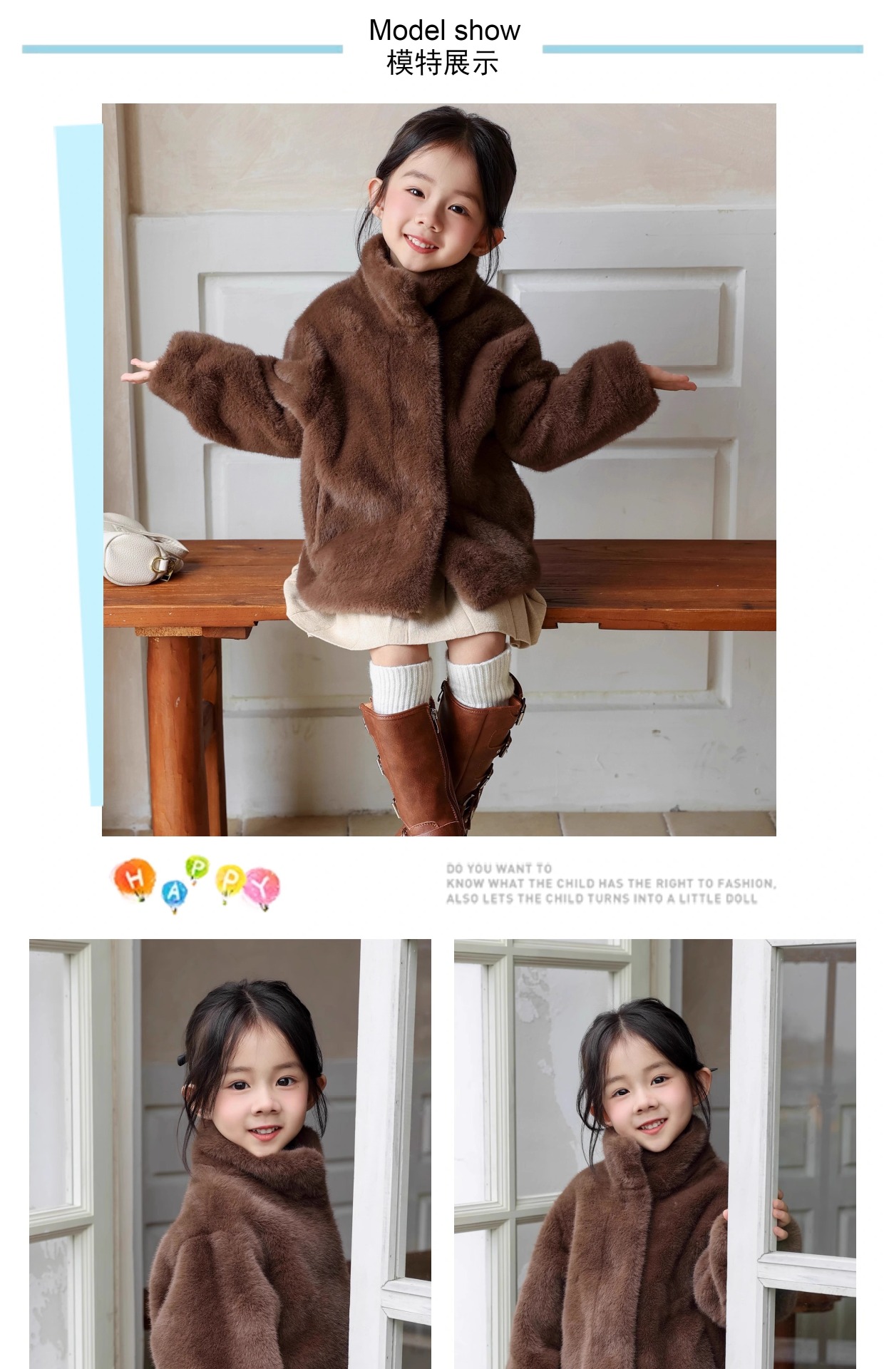걸스 모피 원피스 모방 밍크 벨벳 친환경 모피 재킷, 스탠드 칼라 걸스 두껍게 한 짧은 어린이 마오 마오 윈터 웨어스토어 가기