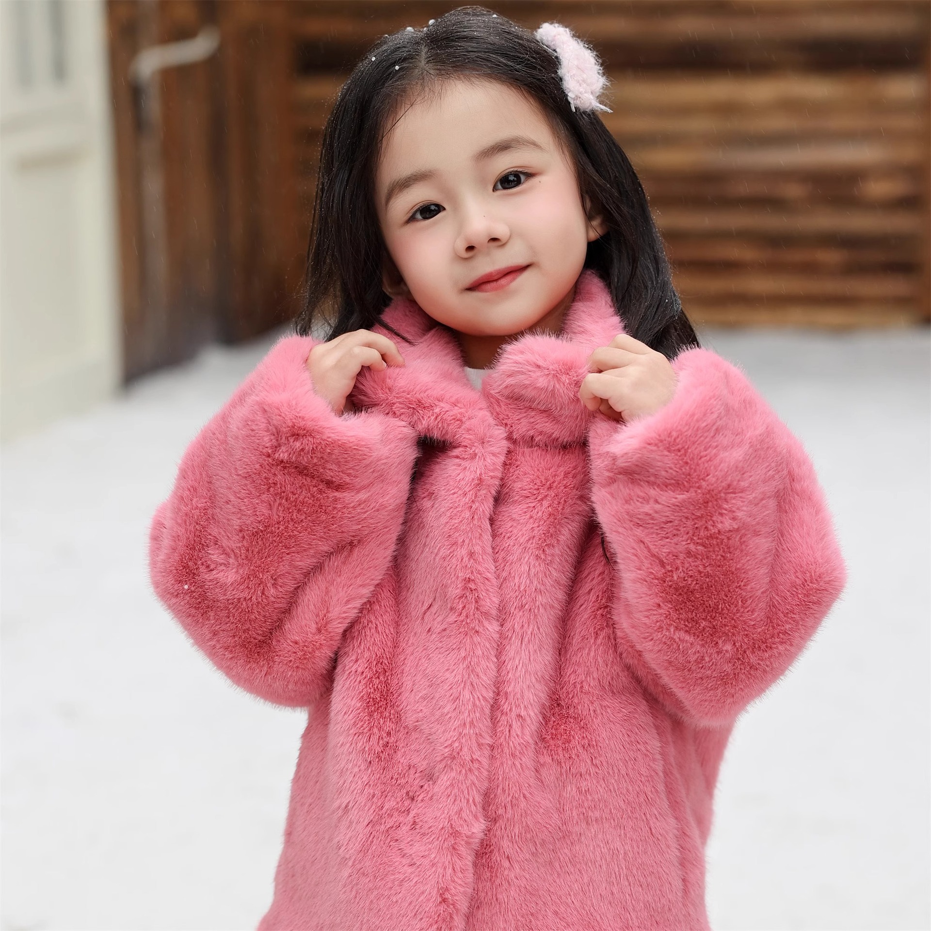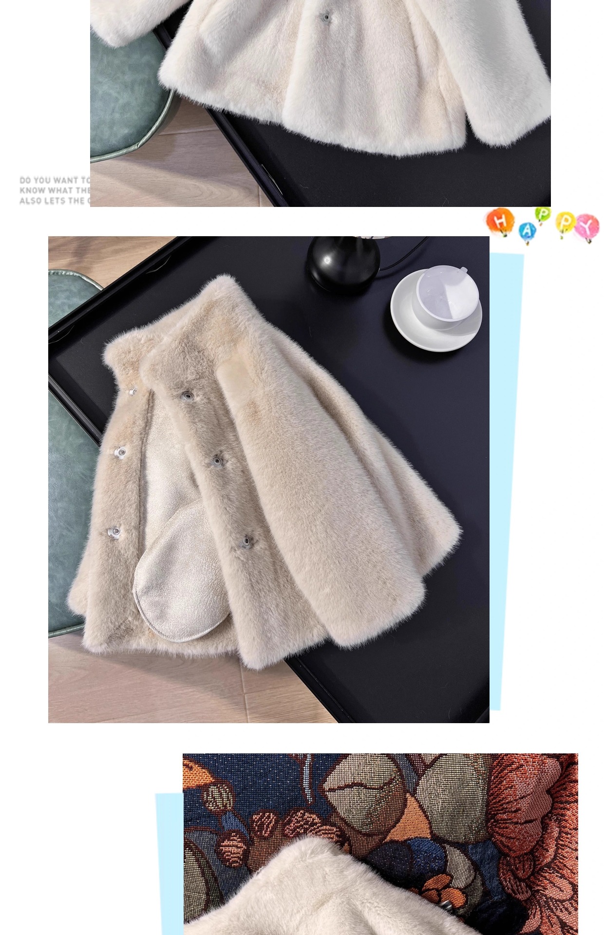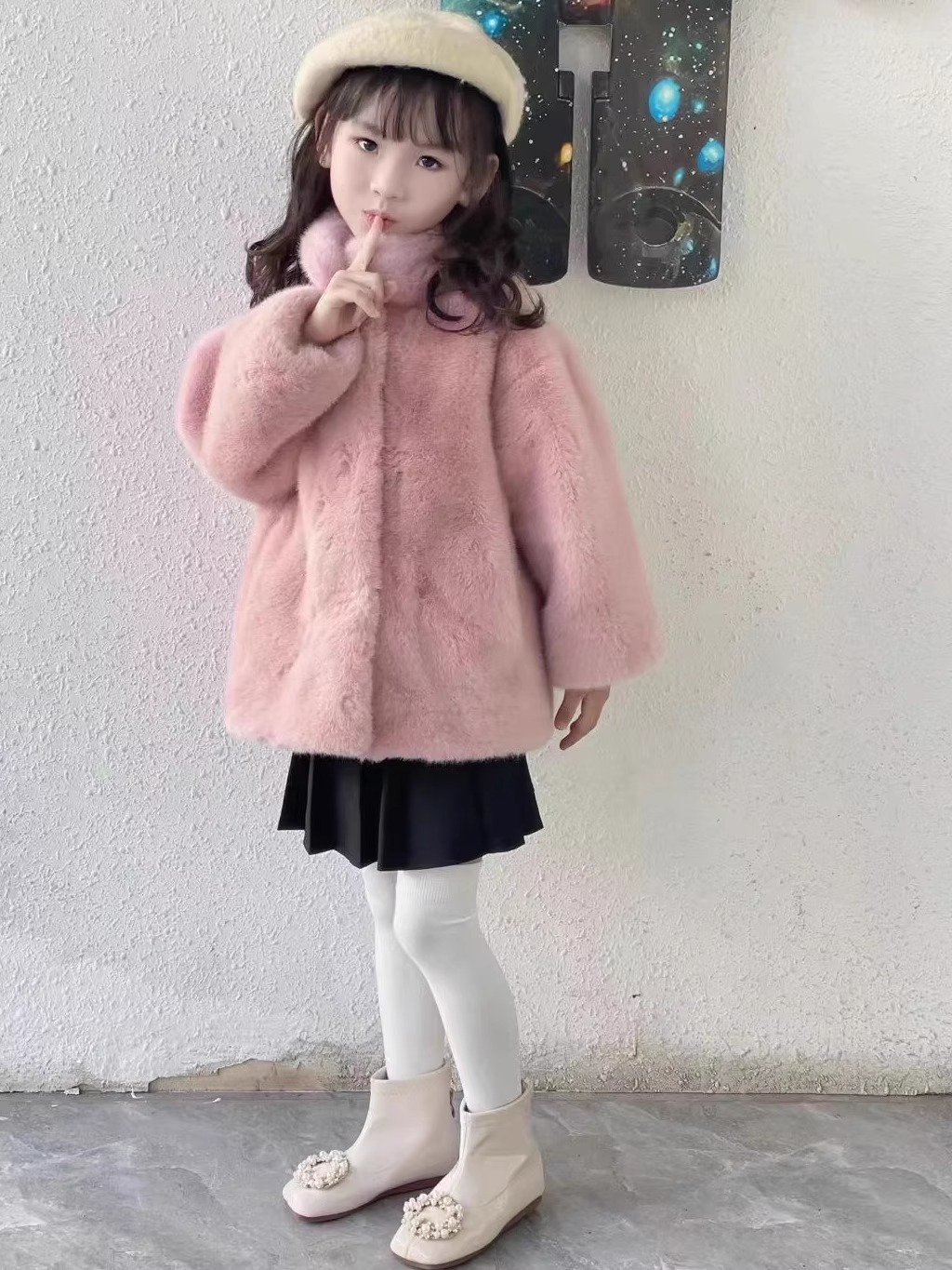 걸스 모피 원피스 모방 밍크 벨벳 친환경 모피 재킷, 스탠드 칼라 걸스 두껍게 한 짧은 어린이 마오 마오 윈터 웨어
