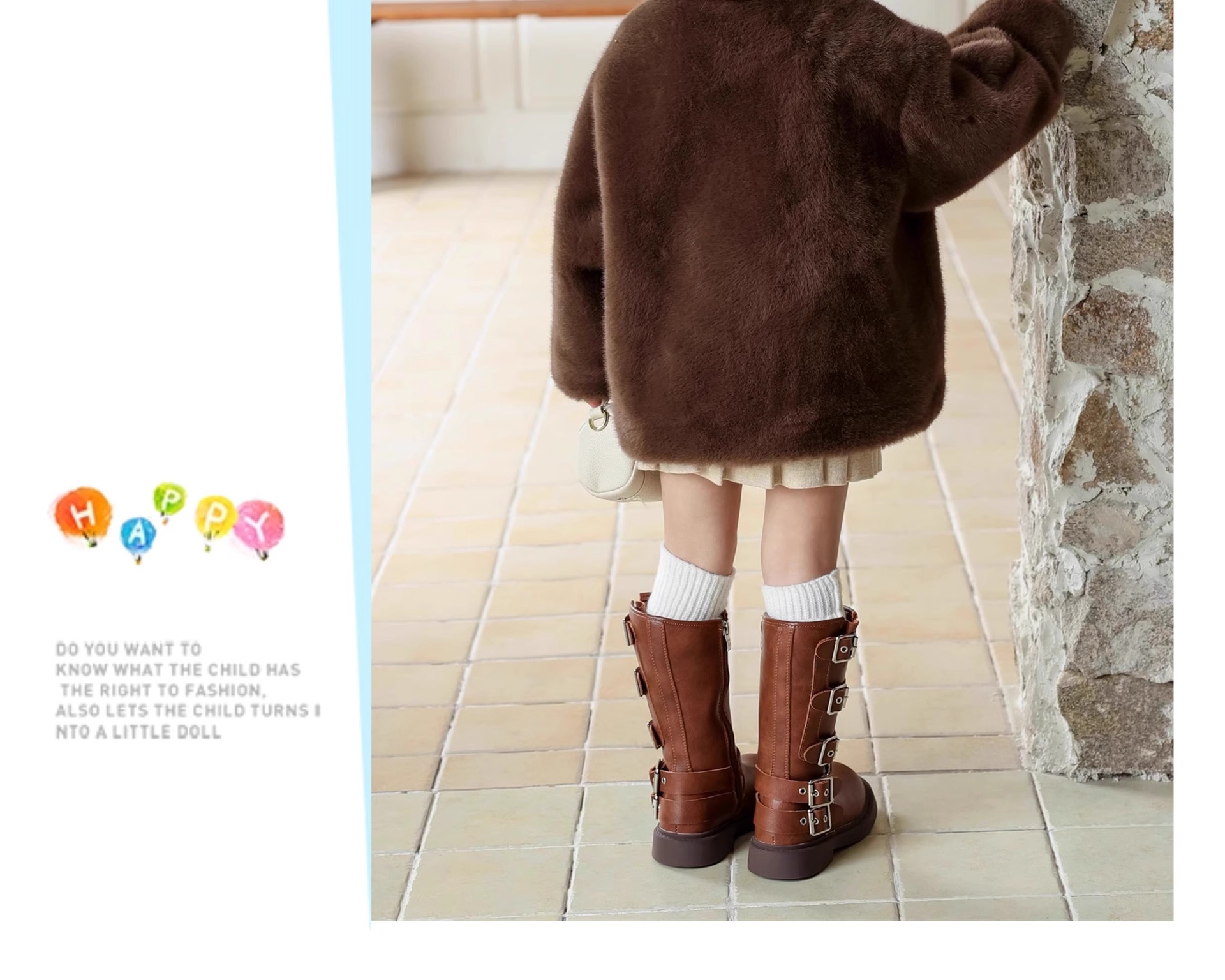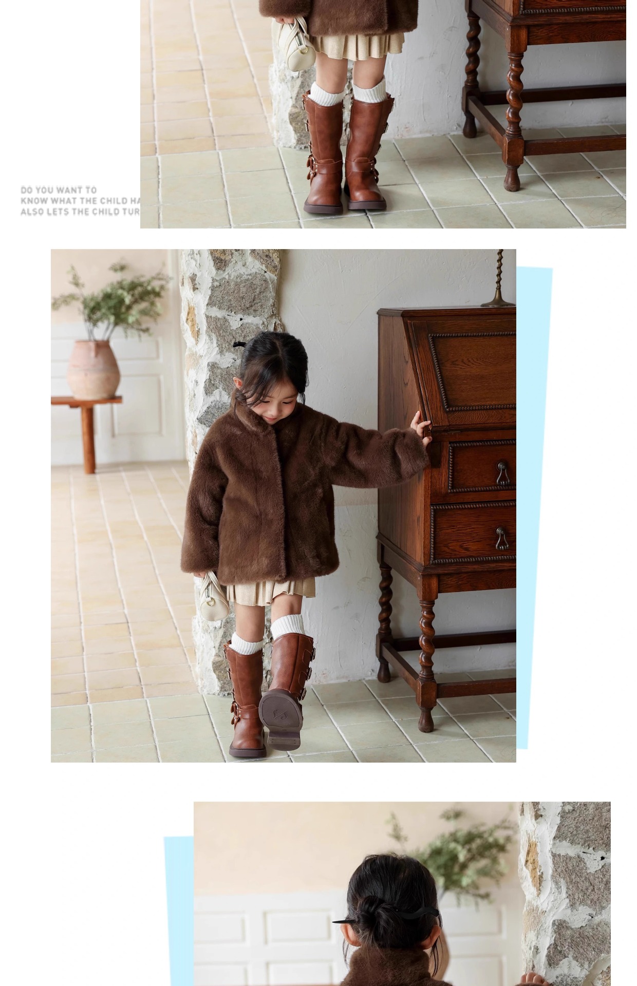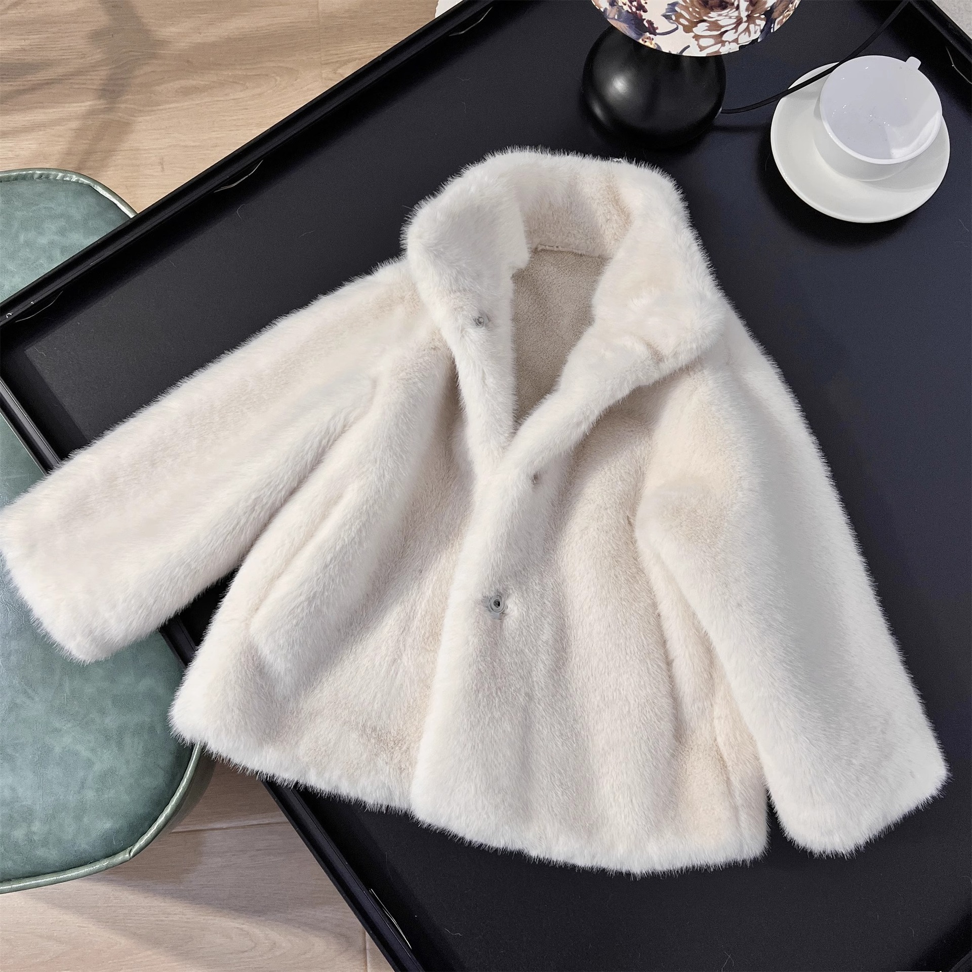 걸스 모피 원피스 모방 밍크 벨벳 친환경 모피 재킷, 스탠드 칼라 걸스 두껍게 한 짧은 어린이 마오 마오 윈터 웨어