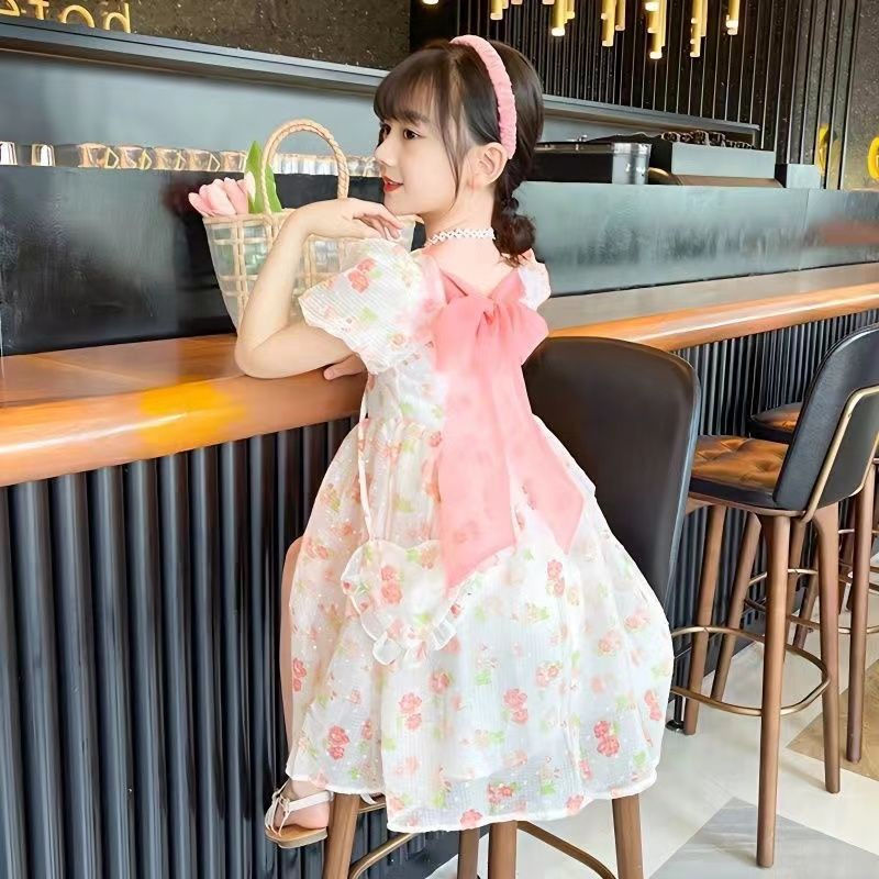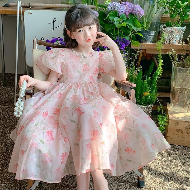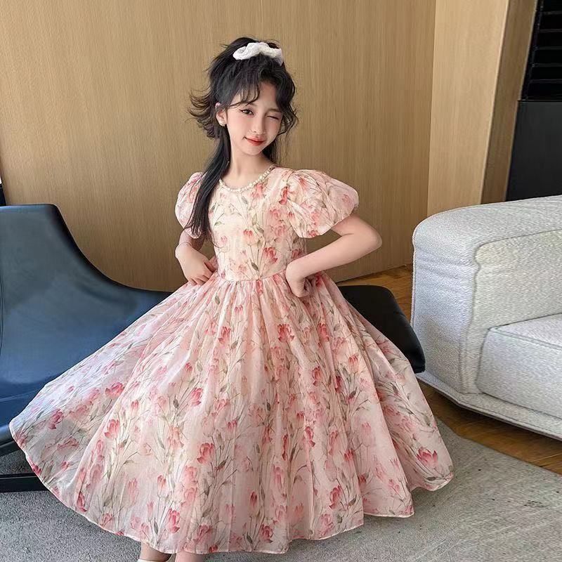 여자 2025 여름 새 반팔 스커트 어린이 한국식 패션걸스 원피스 공주 원피스 트렌디