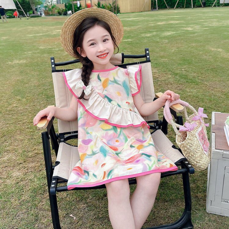 여자 2025 여름 새 반팔 스커트 어린이 한국식 패션걸스 원피스 공주 원피스 트렌디스토어 가기