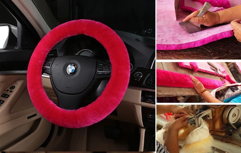 순수 양모 자동차 핸들 커버 정품 모피 통합 겨울 범용 겨울 짧은 플러시 따뜻한 핸들 커버 남성과 여성을위한스토어 가기