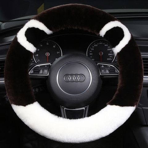 순수 양모 자동차 핸들 커버 정품 모피 통합 겨울 범용 겨울 짧은 플러시 따뜻한 핸들 커버 남성과 여성을위한