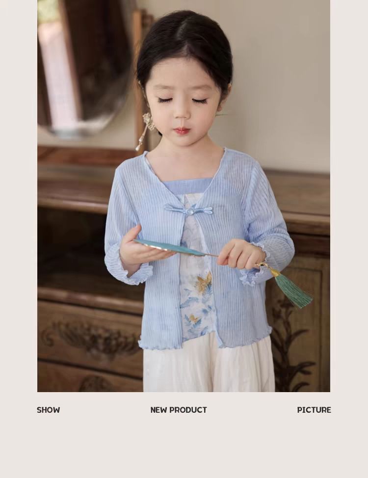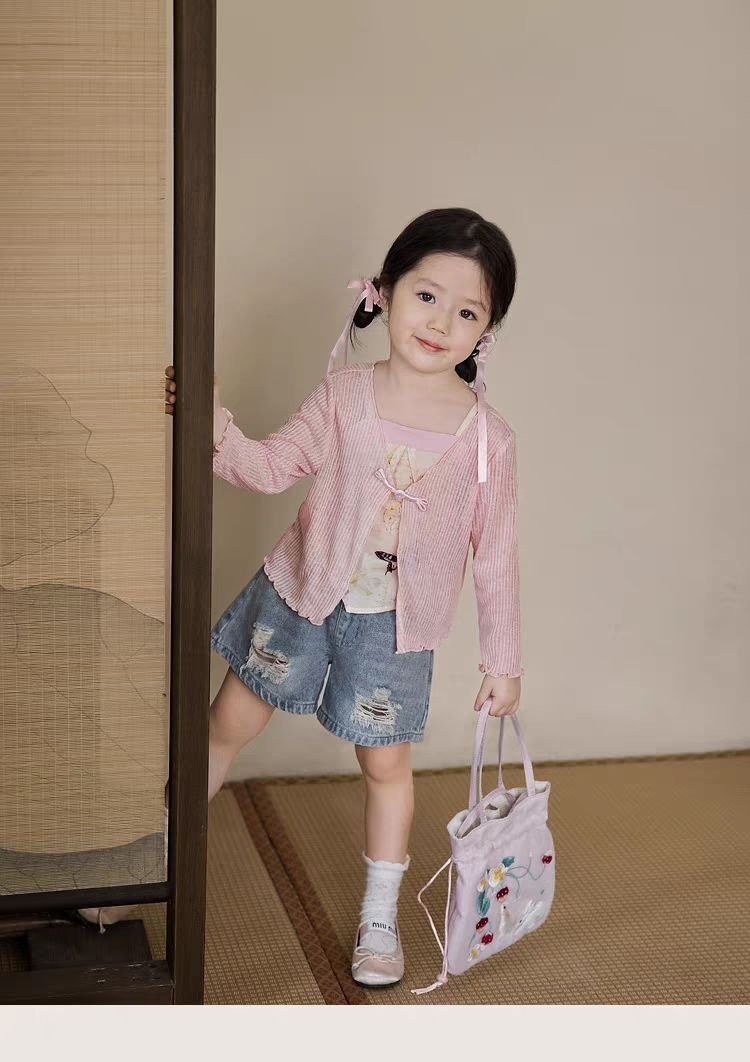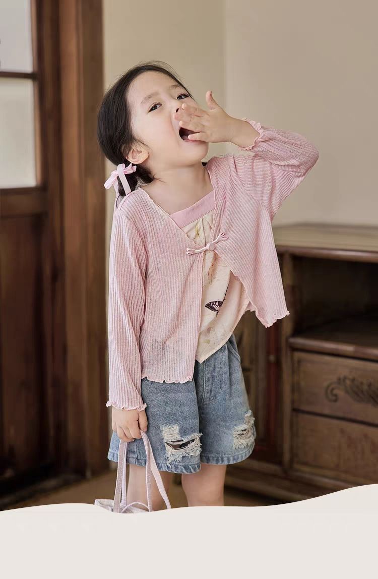 2025 년 여름 새 여아 경량 목도리 버클 카디건 외부 착용 태양 보호 의류 아기의 서양식 올 매치 에어컨 셔츠스토어 가기
