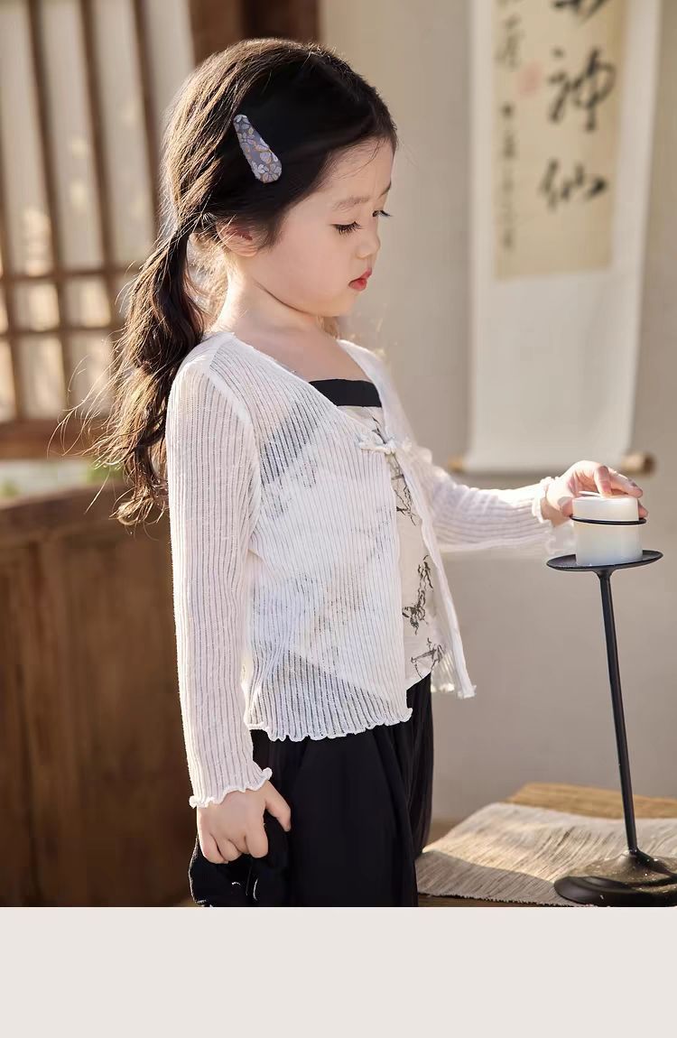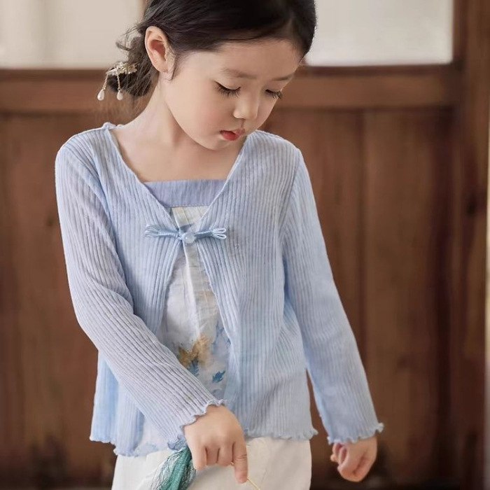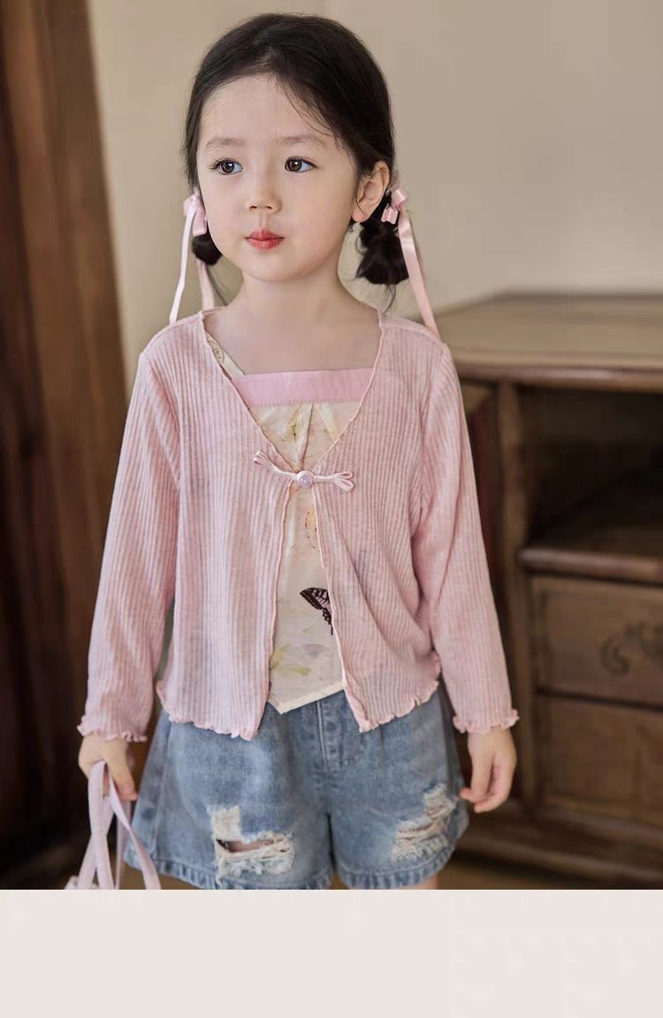 2025 년 여름 새 여아 경량 목도리 버클 카디건 외부 착용 태양 보호 의류 아기의 서양식 올 매치 에어컨 셔츠