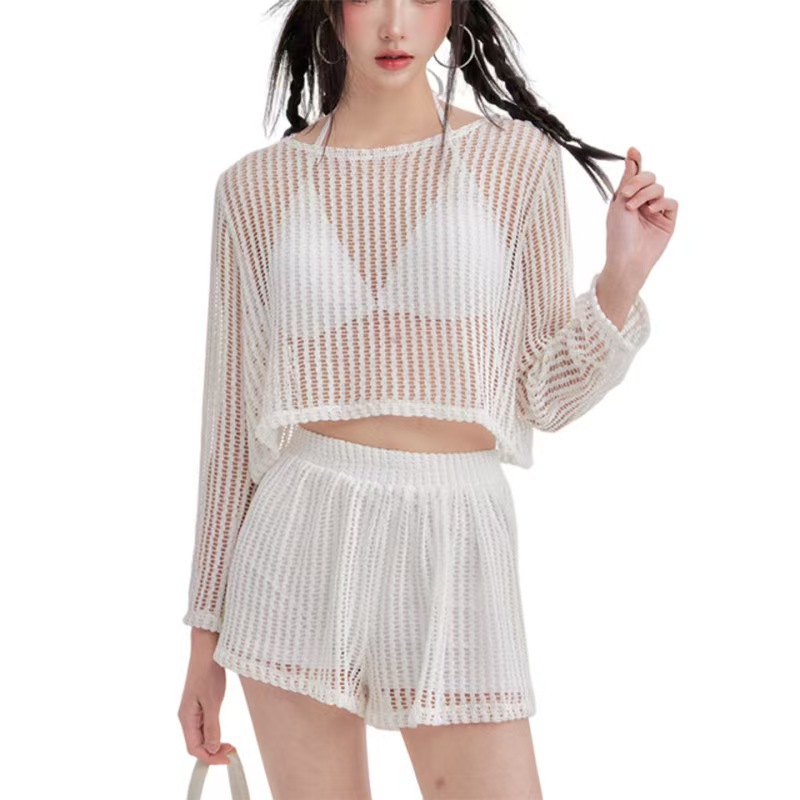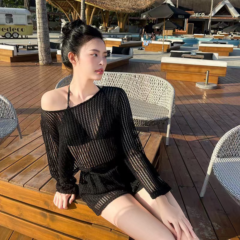 [수제의 사랑] 수영복 여성 스플릿 비키니 3 피스 긴소매 블라우스 레이스 온천 인터넷 축하수영복스토어 가기