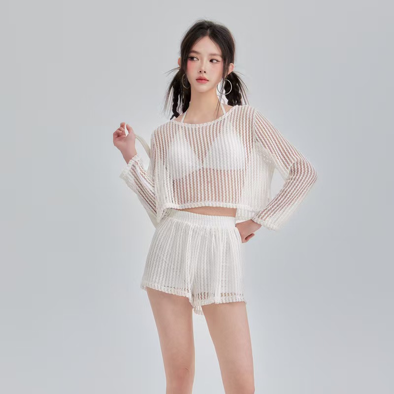 [수제의 사랑] 수영복 여성 스플릿 비키니 3 피스 긴소매 블라우스 레이스 온천 인터넷 축하수영복