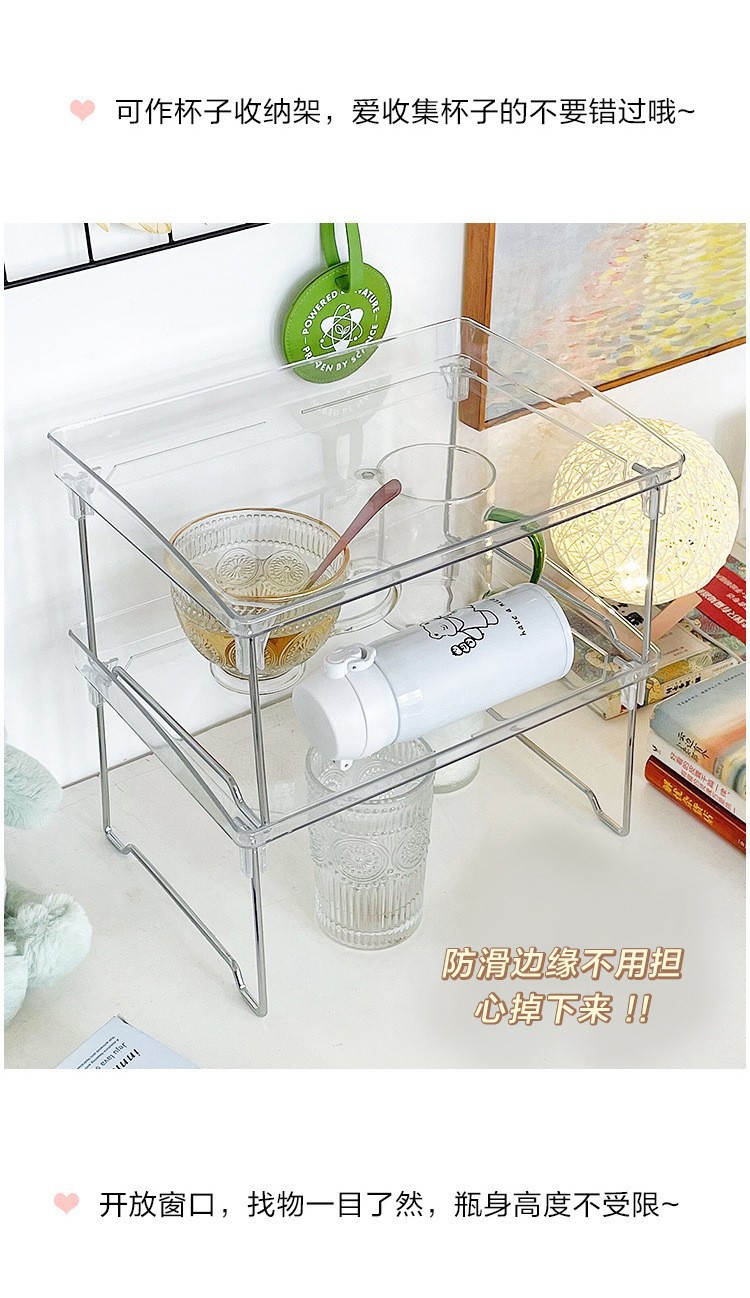 국경 간 접이식 스토리지 랙 사무실 데스크탑 다층 투명 스토리지 랙 아크릴 기숙사 테이블 더블 레이어 랙