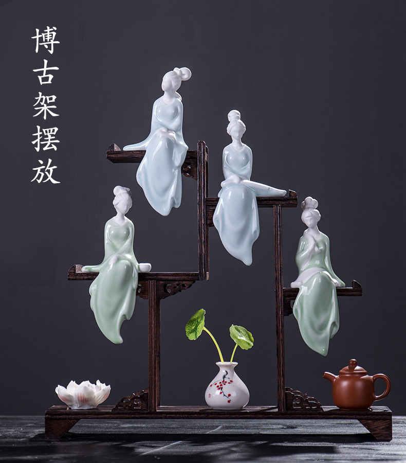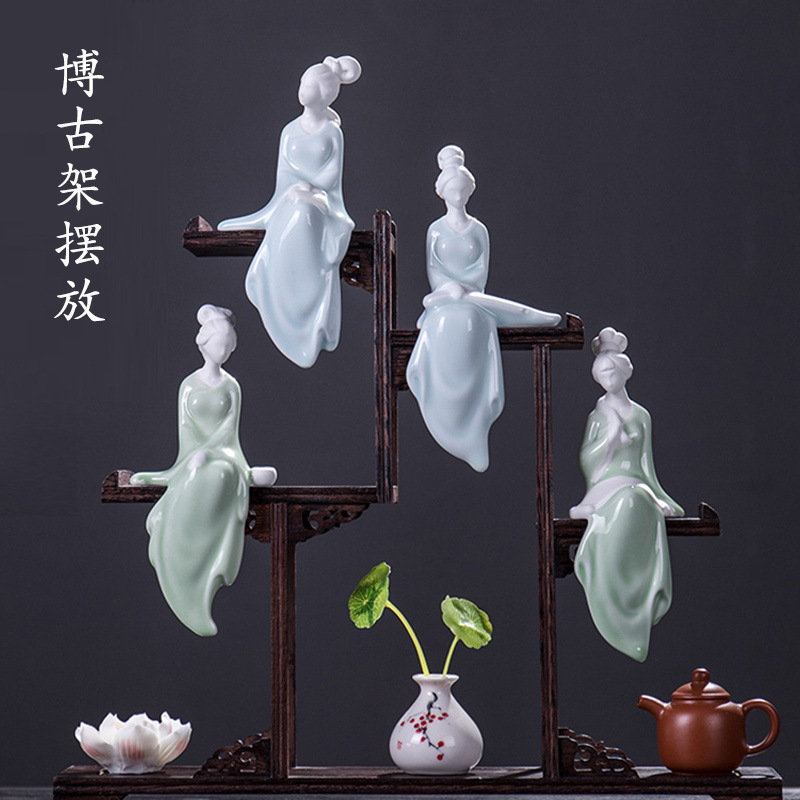 진치 서예 및 회화 웨이트리스 세라믹 장식품 작은 몽크 골동품 장식품 TV 내각 캐릭터 선 장식스토어 가기