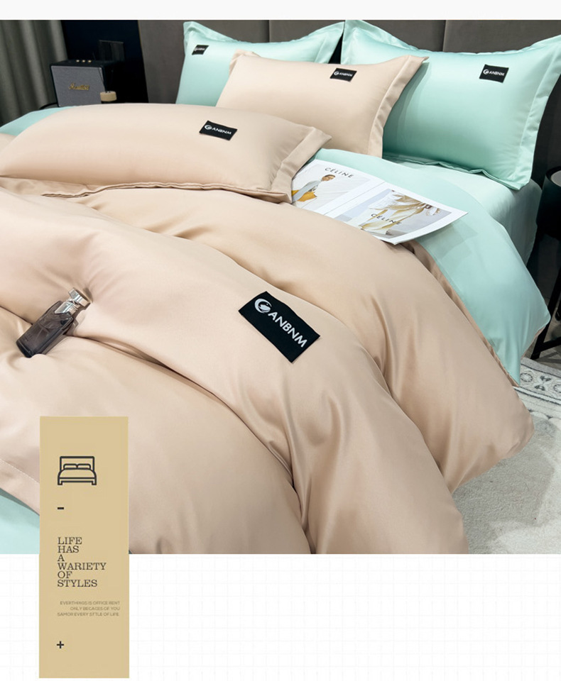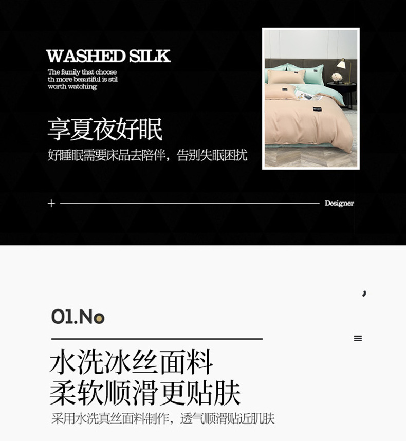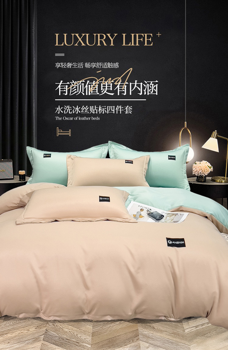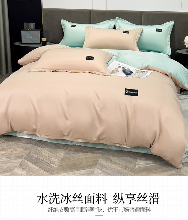여름 얼음 실크 이불 커버 싱글 피스 150x200x230 퀼트 커버 2025 새로운 여름 실크 부드러운 시원한 느낌 침대 4 피스 세트스토어 가기