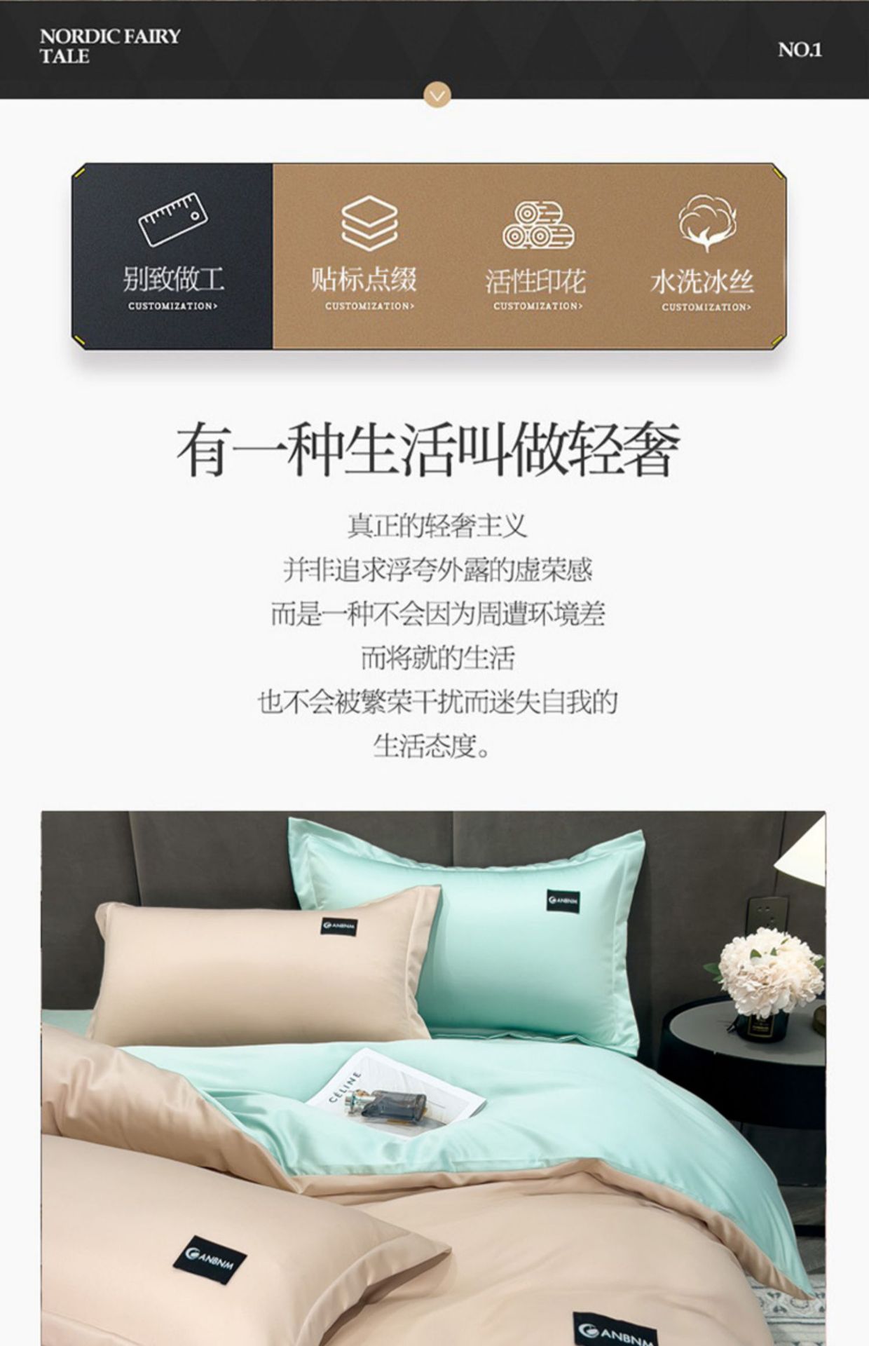 • 1.35m 침대 [4피스 시트 세트] - 180x220cm 이불 코어에 적합
