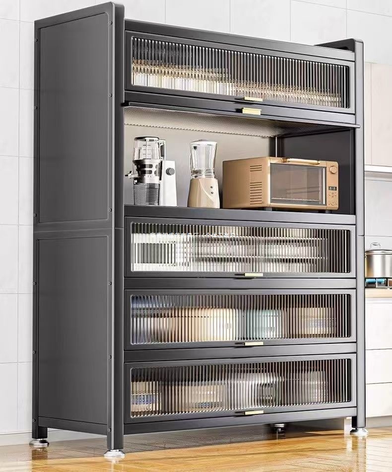 줄 지어진 1.2 미터 두꺼운 다층 부엌 캐비닛 사이드 보드 전자 레인지 조립 보관 캐비닛 방수 잡다한 캐비닛스토어 가기