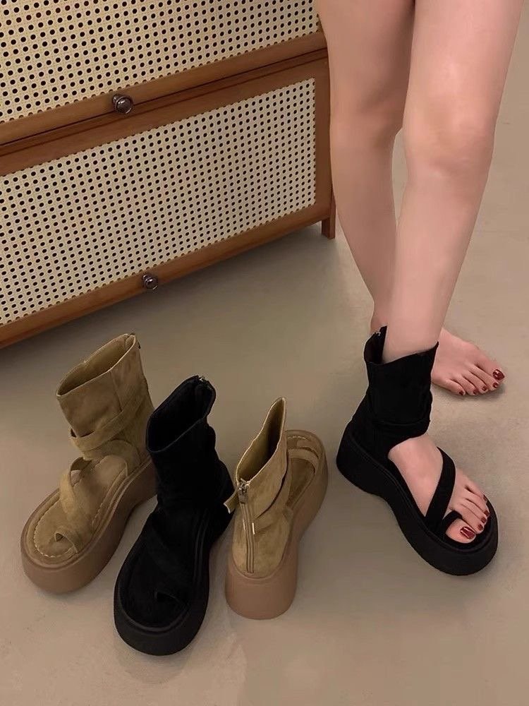 두꺼운 바닥 높이 증가 바지 샌들 여성용 2025 년 여름 새 스타일 작은 부드러운 바닥 세트 발가락 샌들 높이 증가 로마 여성 신발스토어 가기