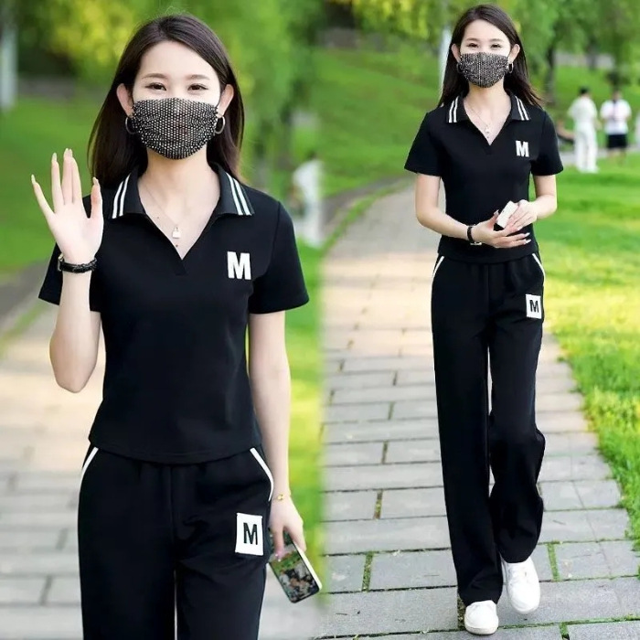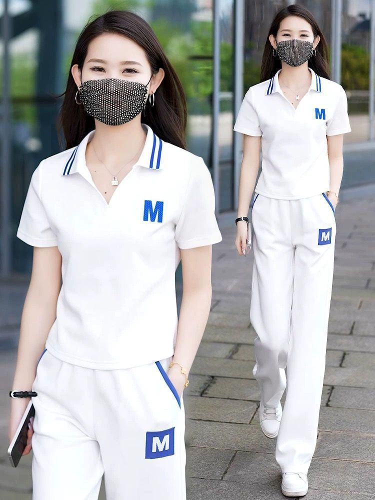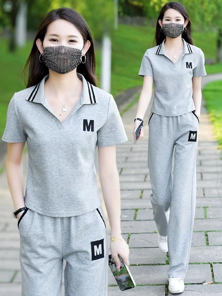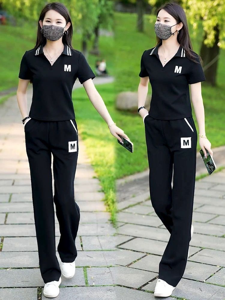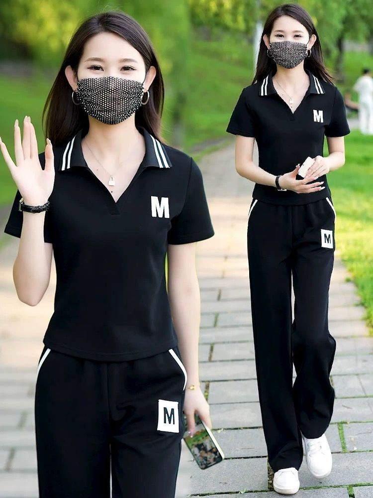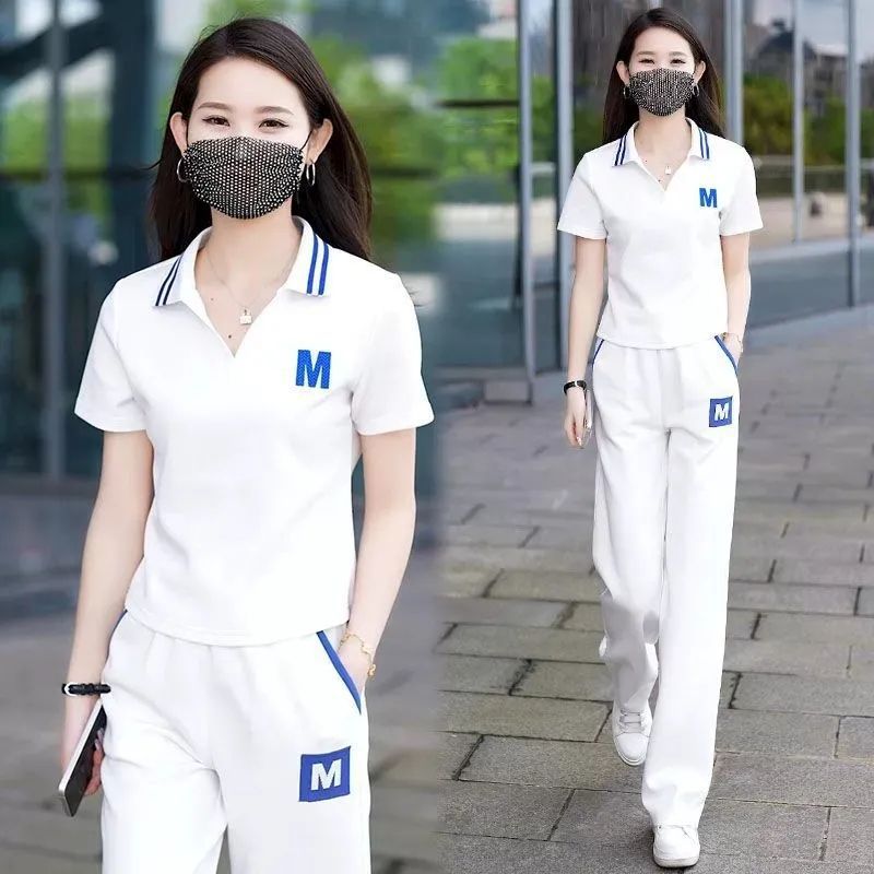 대외 무역 플러스 사이즈 캐주얼 운동복 세트 여름 새로운 패션 작은 젊은 반팔 와이드 레그 바지 투피스 세트스토어 가기