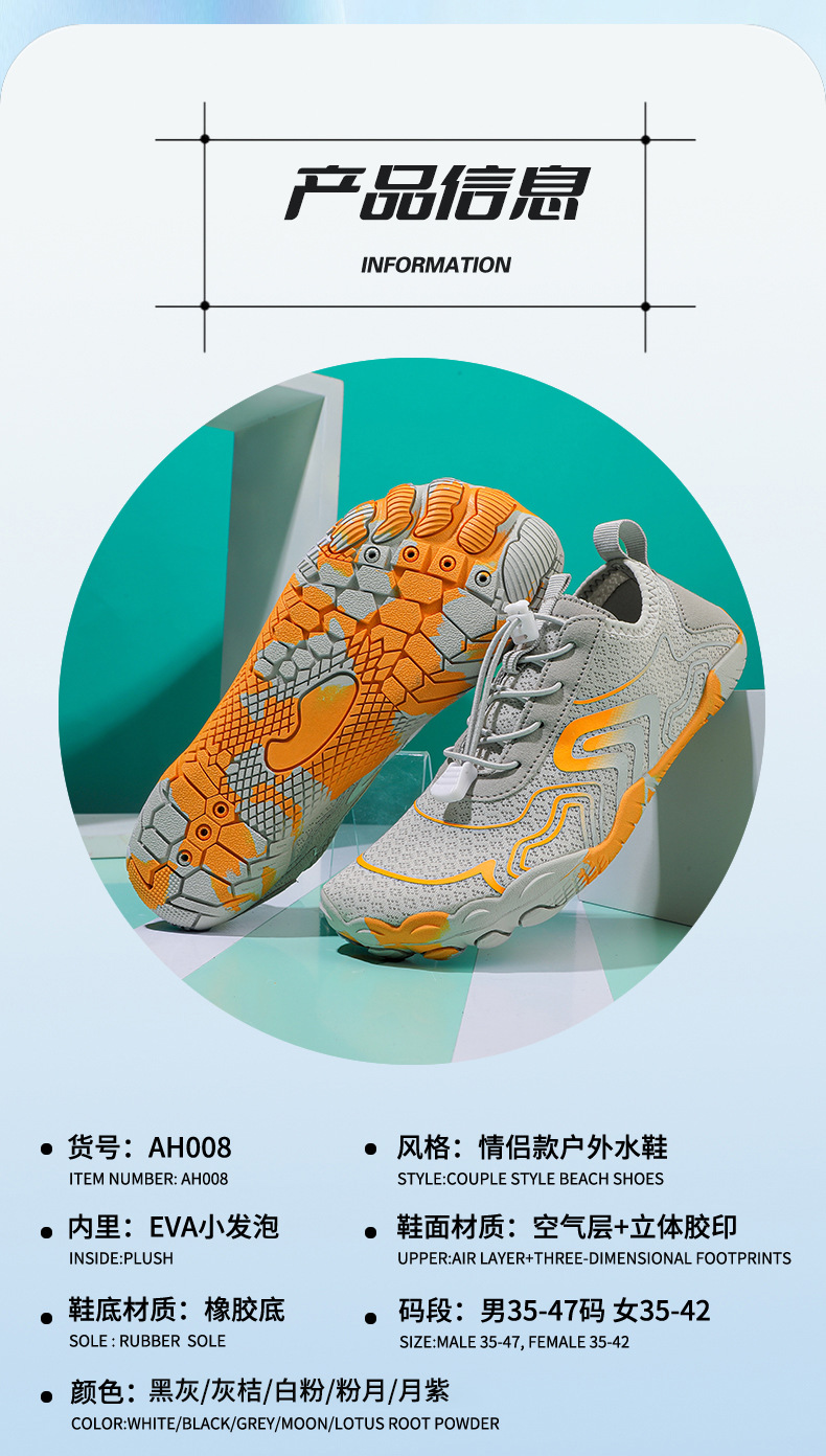 2024 새로운 야외 5 손가락 추적 신발 비치 신발 커플 수영복 신발 남녀 낚시 통기성 하이킹 신발