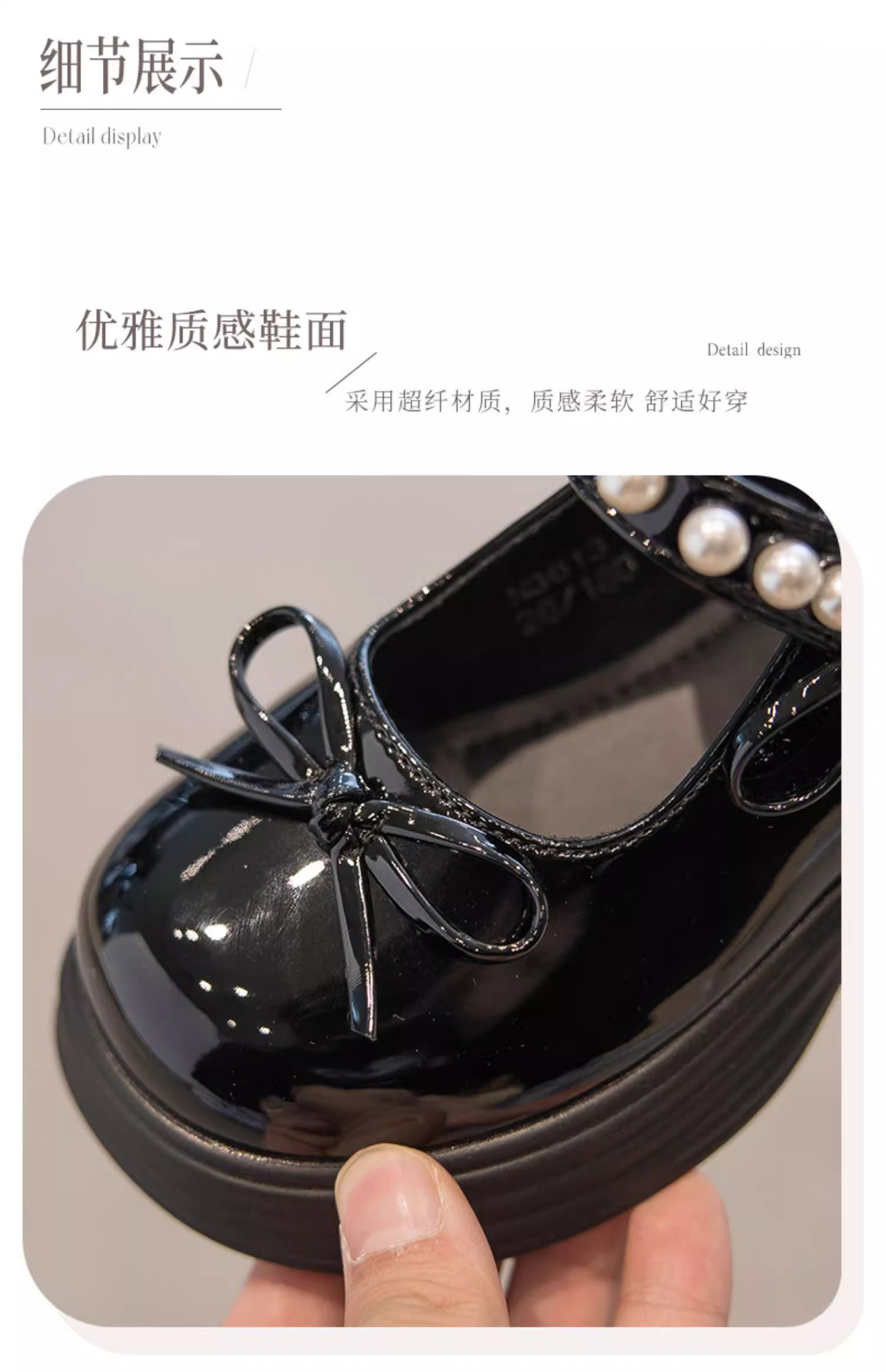 소녀 작은 가죽 신발 2025 봄과 가을 새로운 진주 활 공주 신발 작은 소녀 메리 제인 아기 신발
