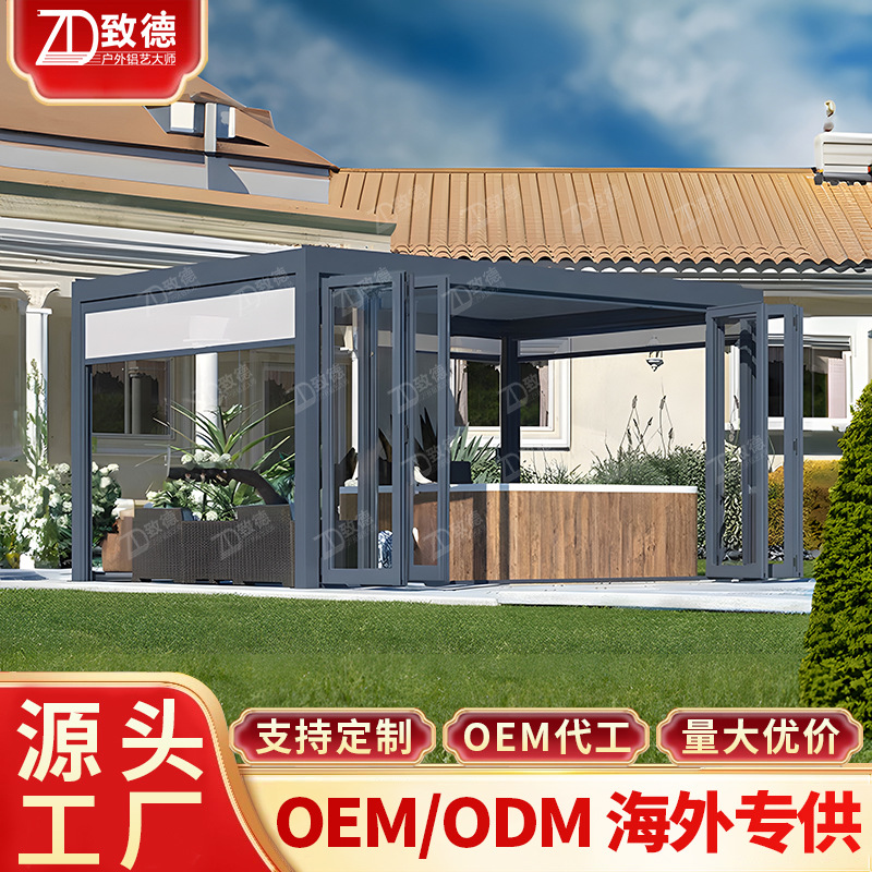 야외 루버 파빌리온 야드 방우관 접이식 문 슬라이딩 도어 절연 팔각형 알루미늄 합금 파빌리온 1 층스토어 가기