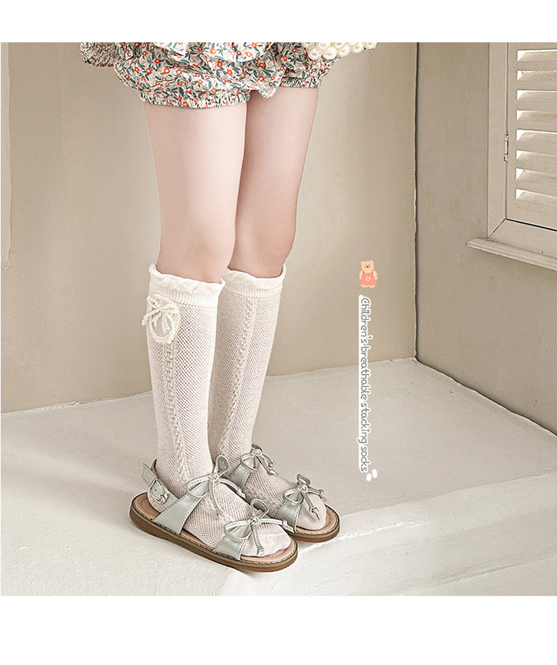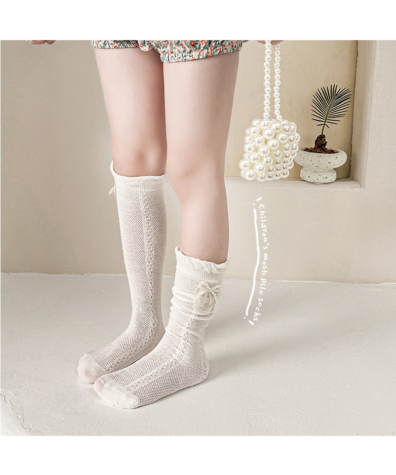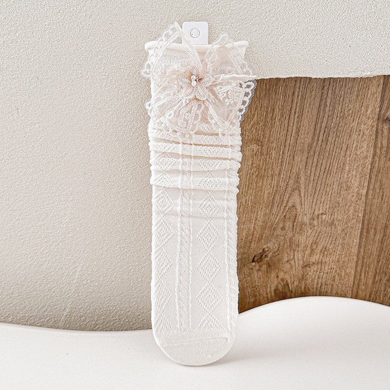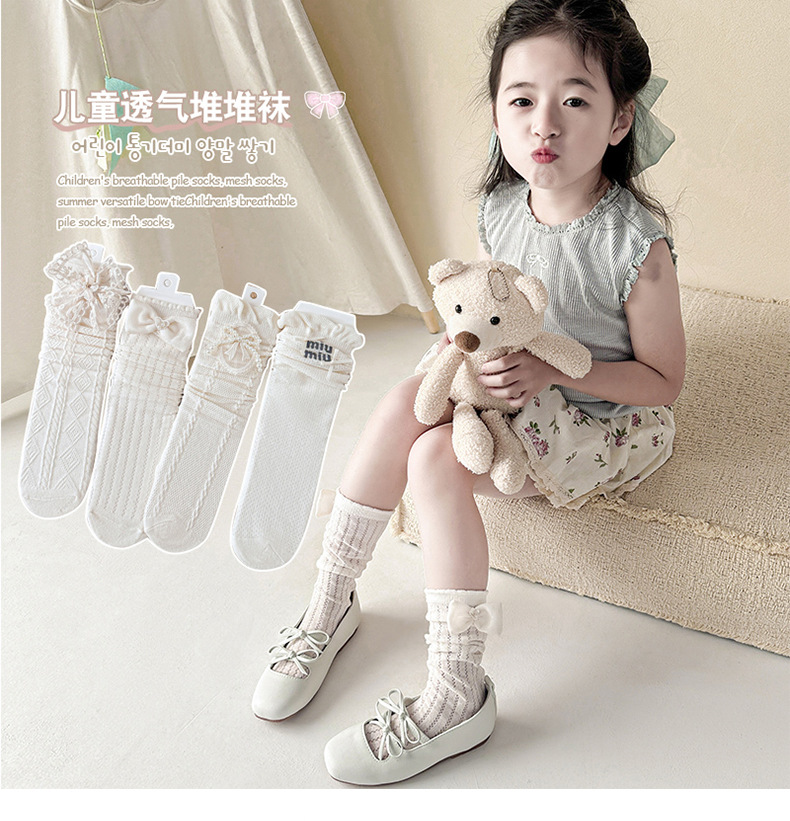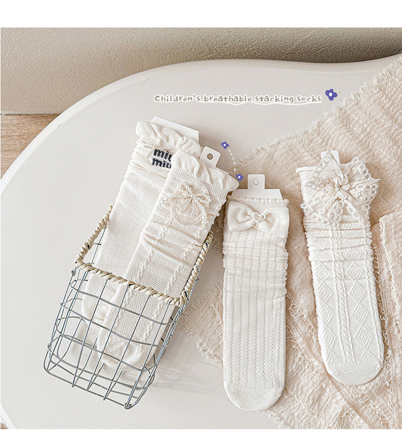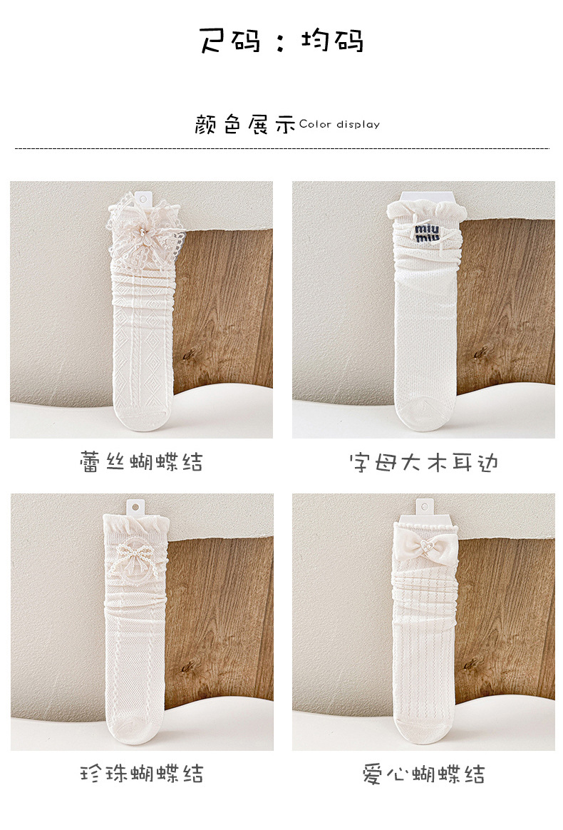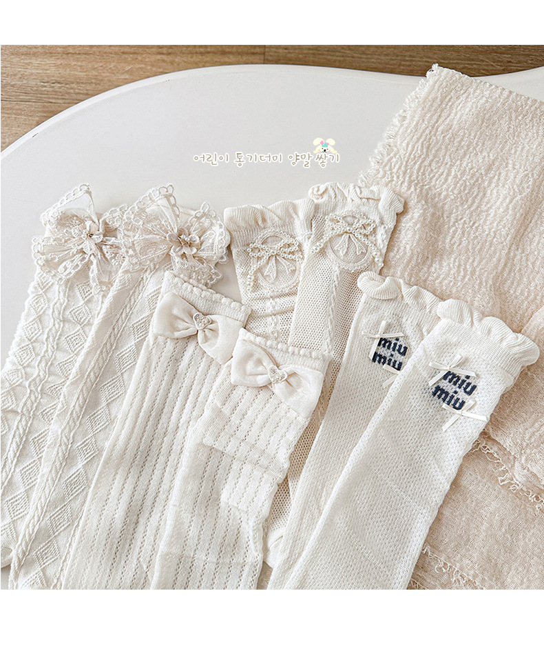 어린이 레이스 중간 길이 양말 소녀 로리타 양말 보우 레이스 공주 양말 봄 얇은 양말 스트레이트 양말