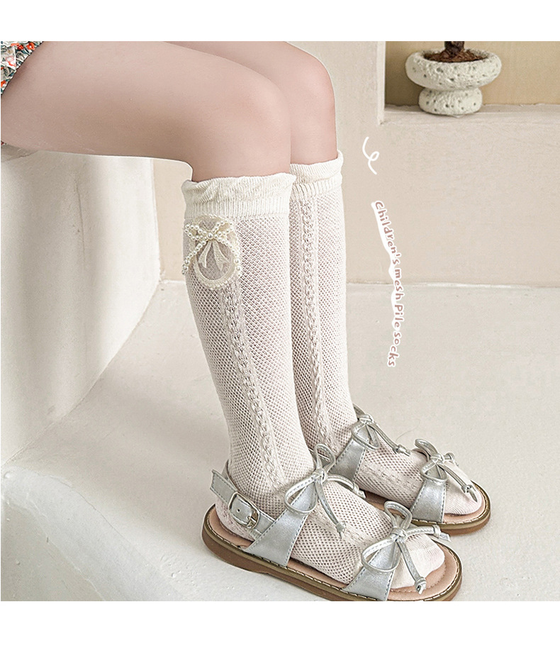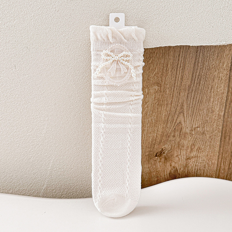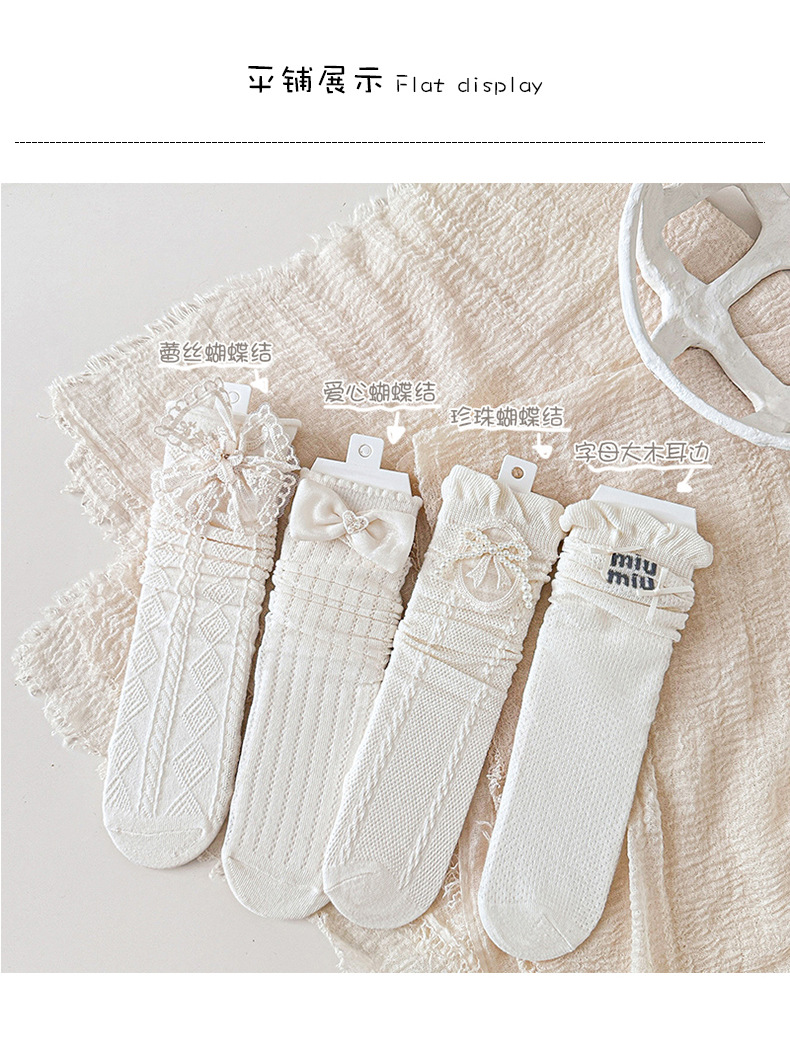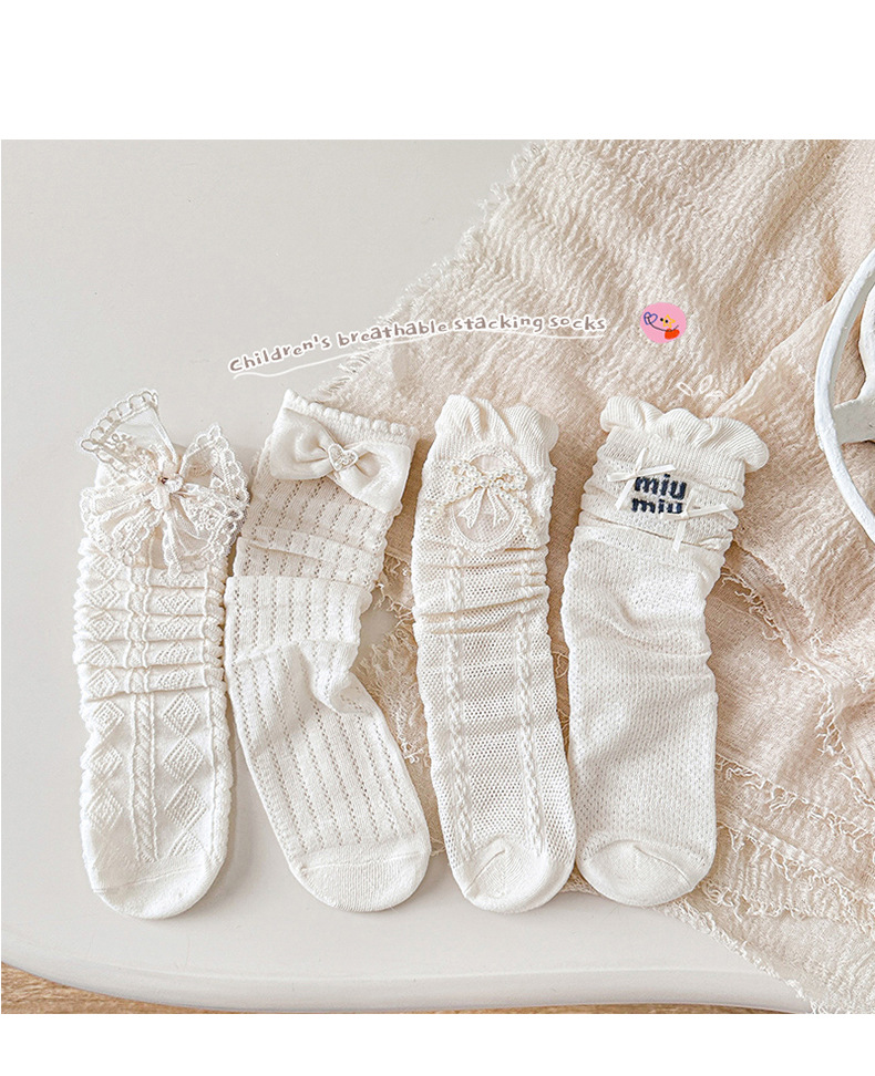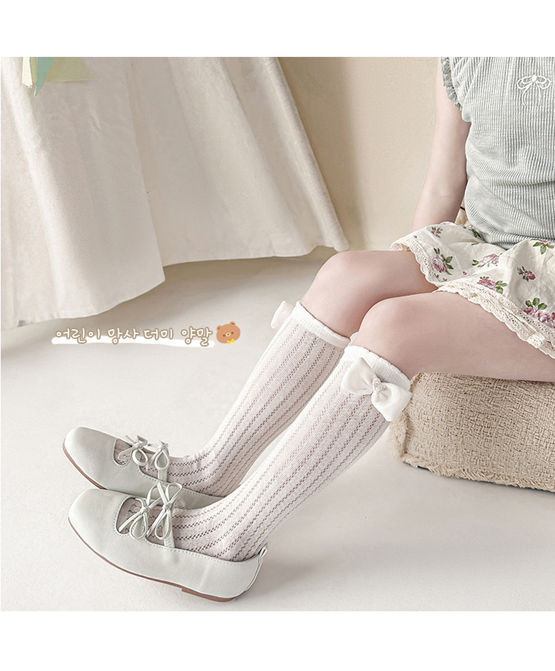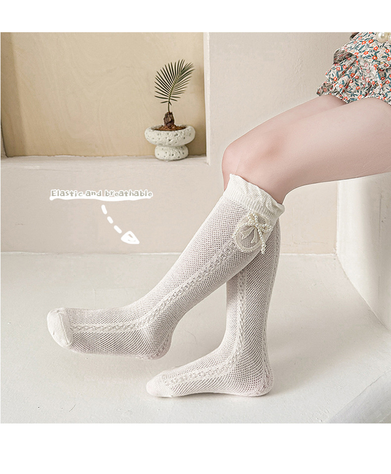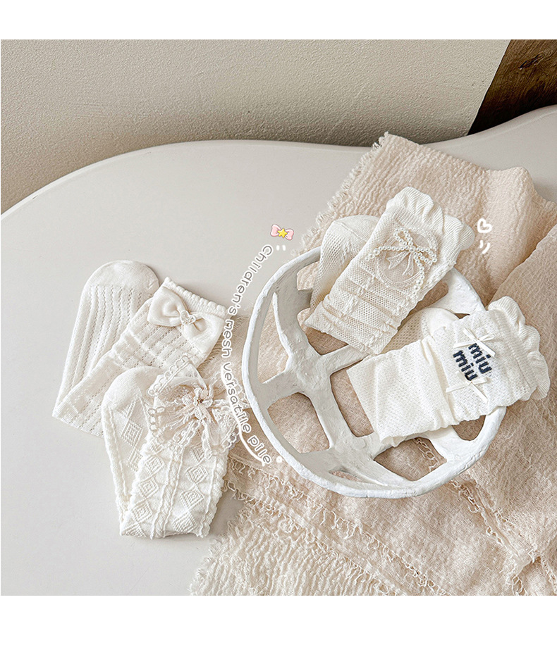 어린이 레이스 중간 길이 양말 소녀 로리타 양말 보우 레이스 공주 양말 봄 얇은 양말 스트레이트 양말