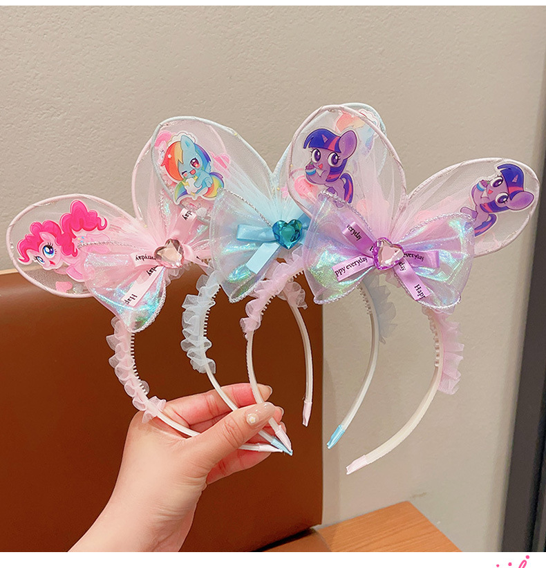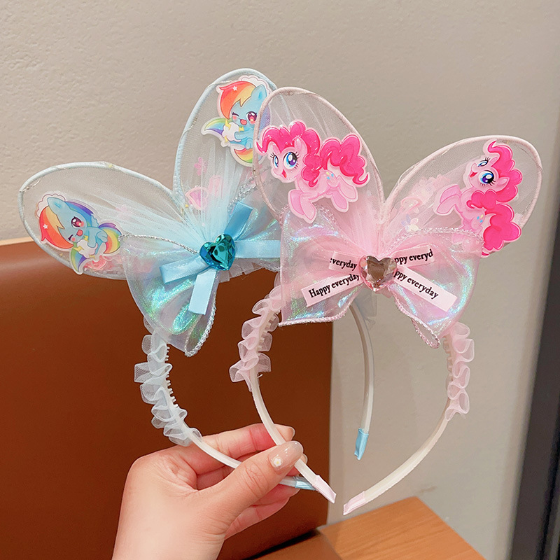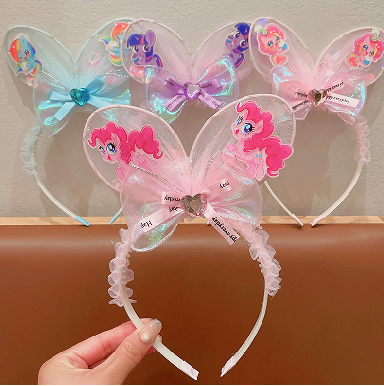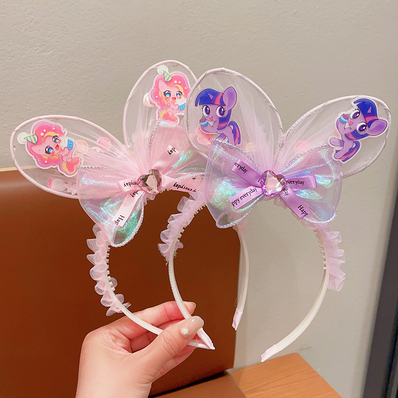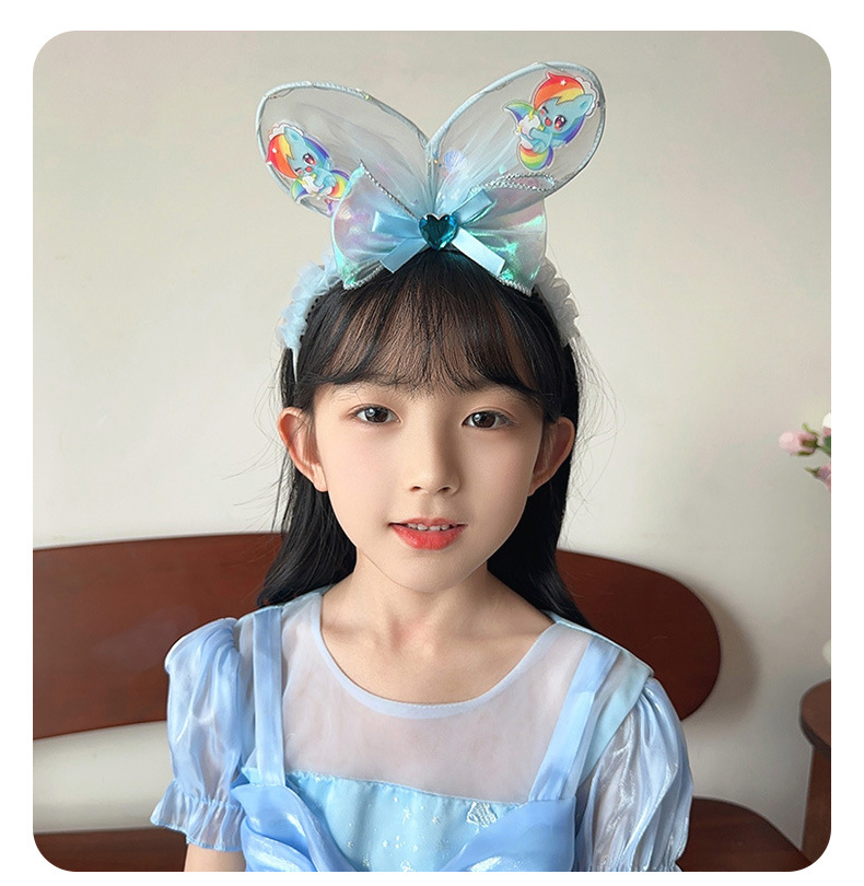어린이 조랑말 폴리 빛나는 머리띠 여자 머리 토끼 귀 머리띠 공주 만화 메시 머리 마른 머리 부상 없음