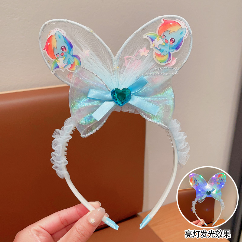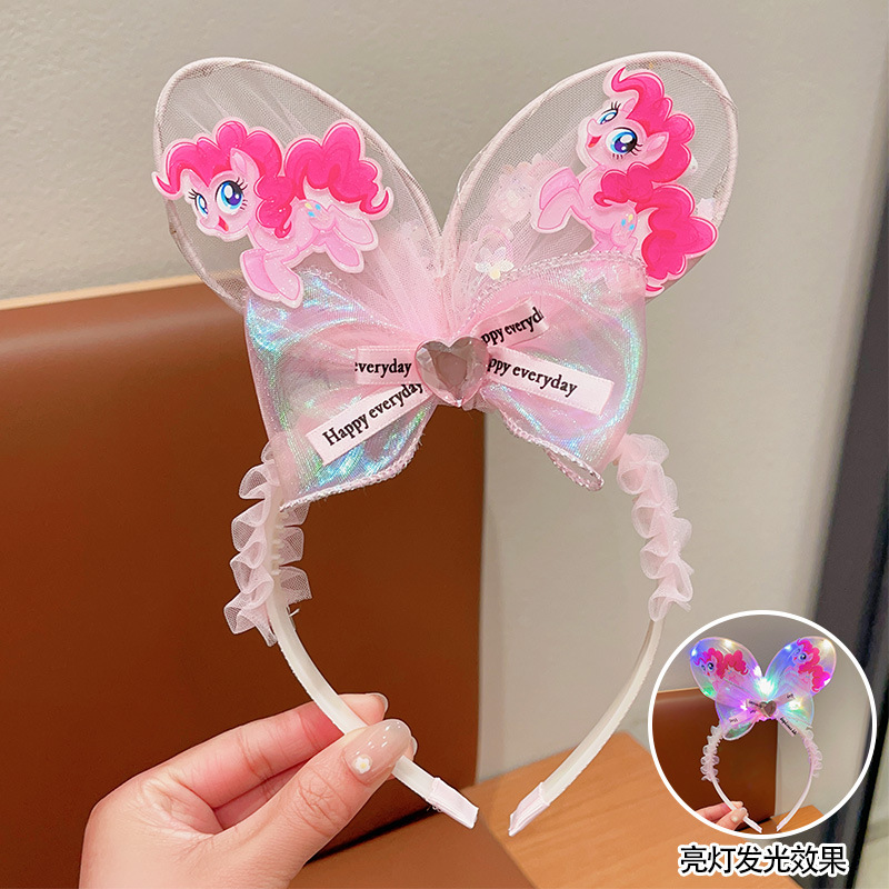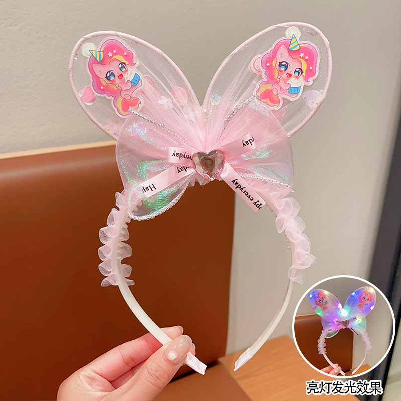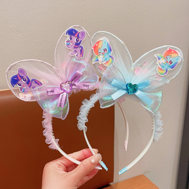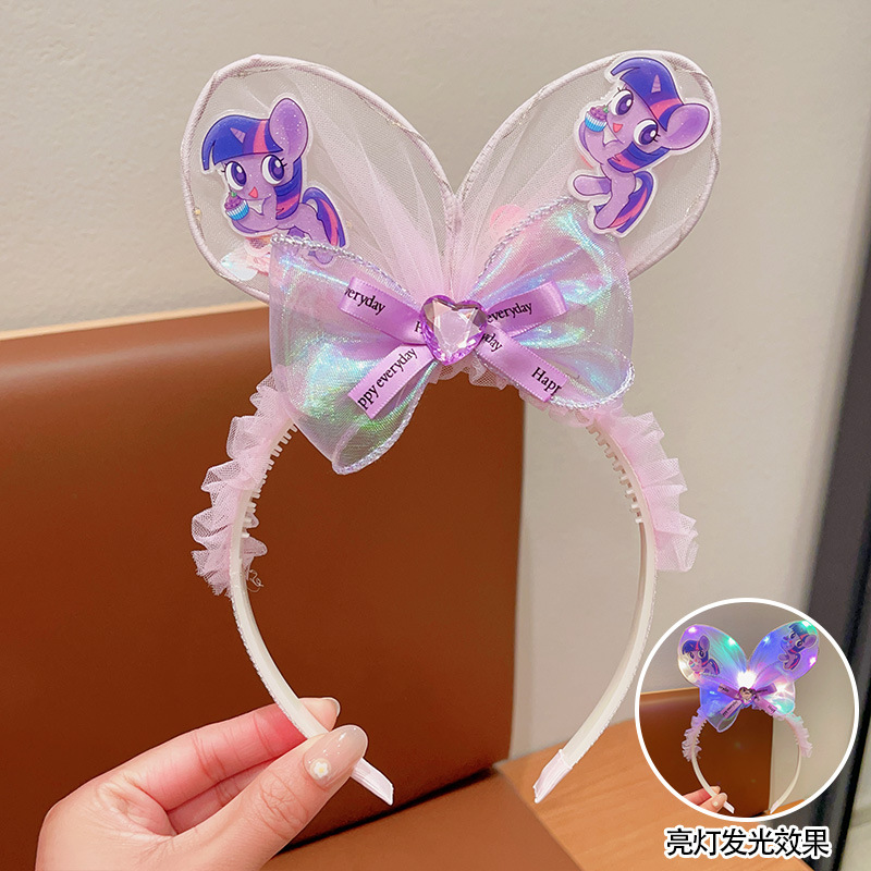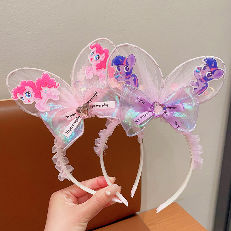 어린이 조랑말 폴리 빛나는 머리띠 여자 머리 토끼 귀 머리띠 공주 만화 메시 머리 마른 머리 부상 없음