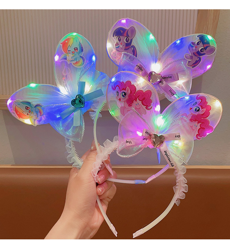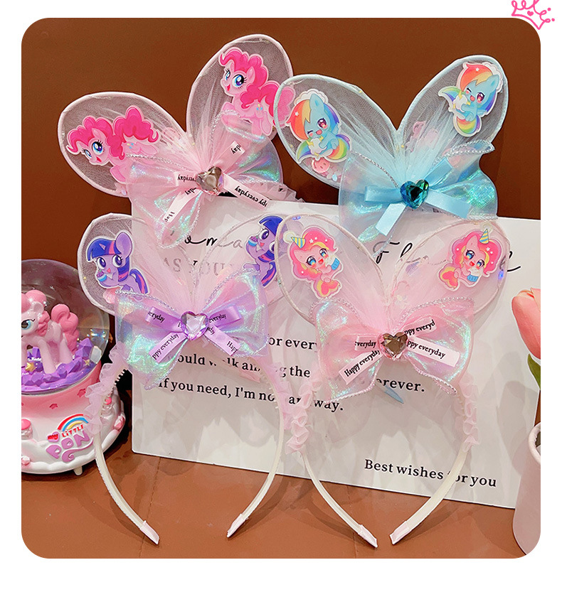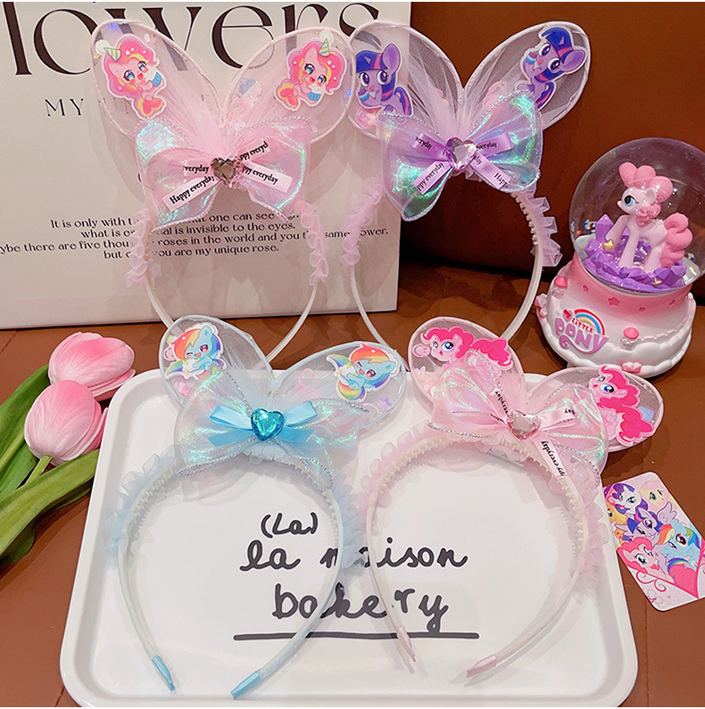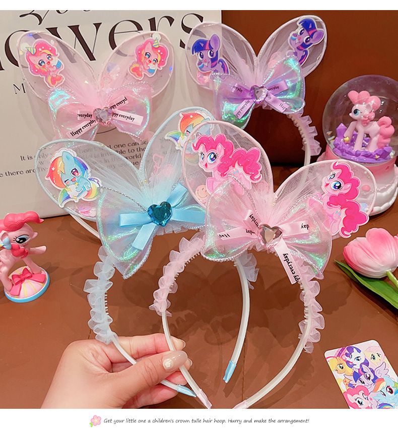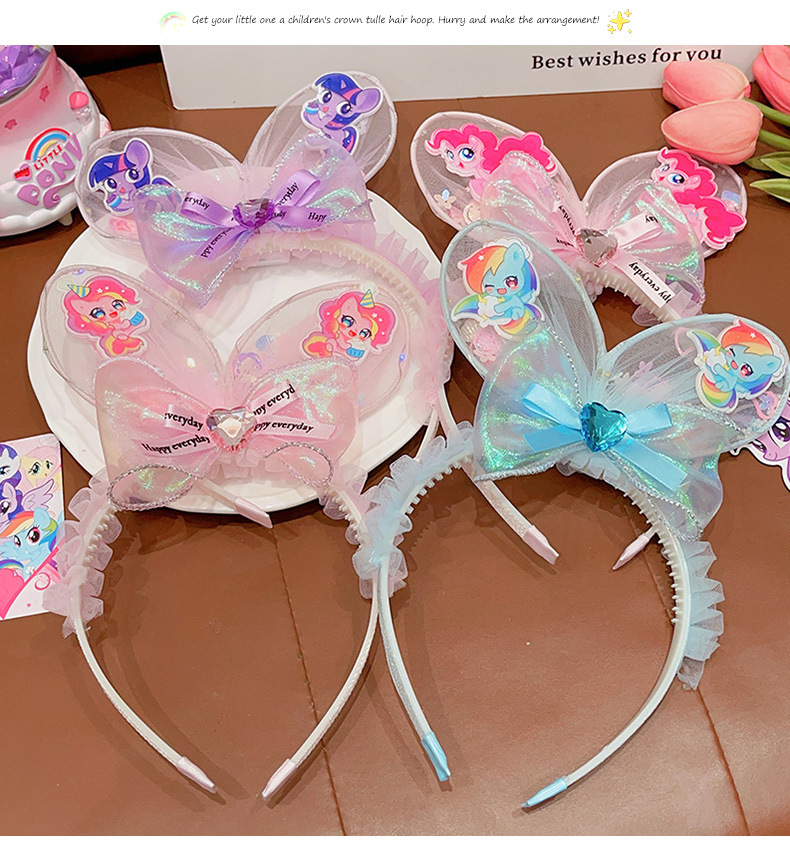 어린이 조랑말 폴리 빛나는 머리띠 여자 머리 토끼 귀 머리띠 공주 만화 메시 머리 마른 머리 부상 없음스토어 가기