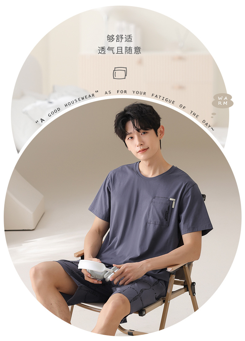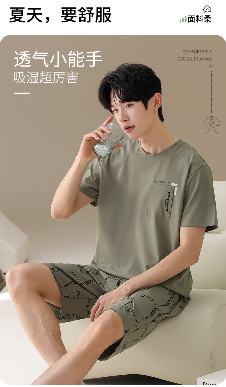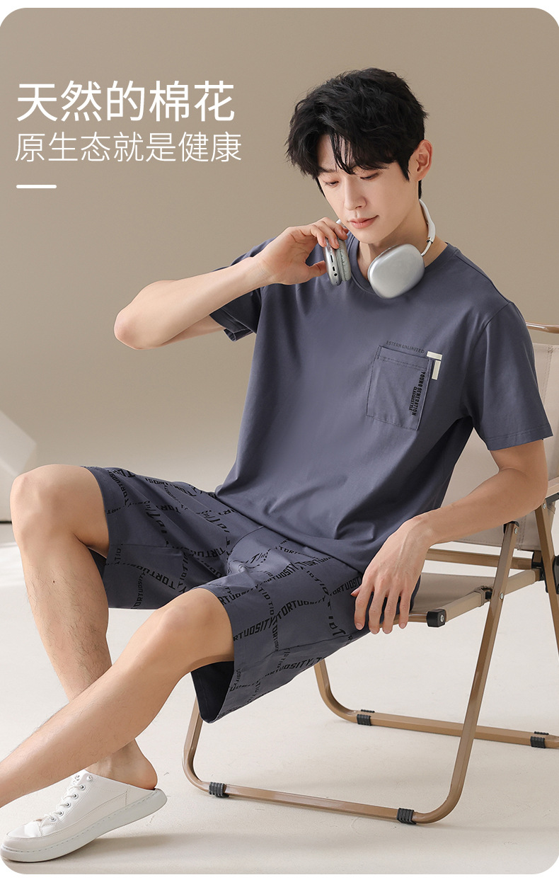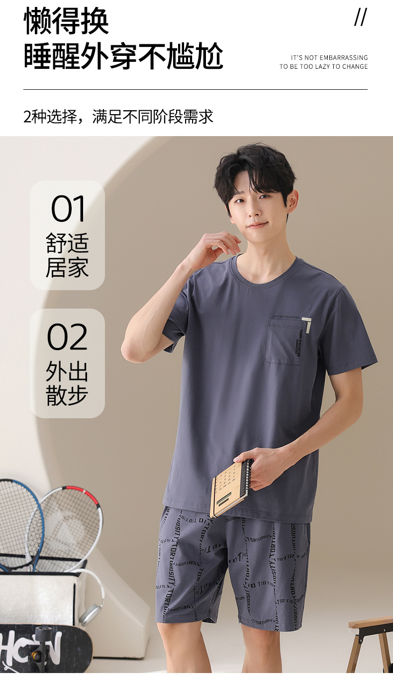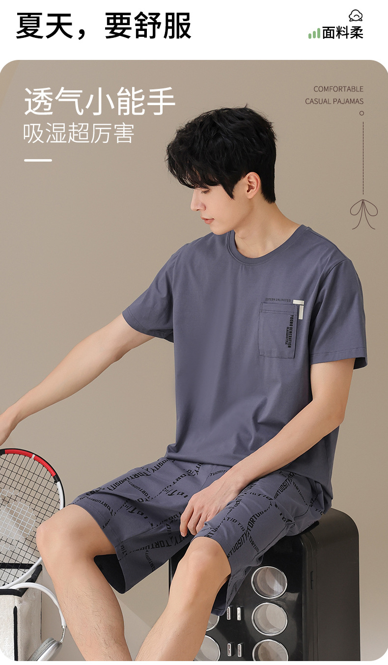 잠옷 남성 여름 얇은 순면 반팔 반바지 대형 웨어러블 슈트 여름 면 남성 가정복스토어 가기