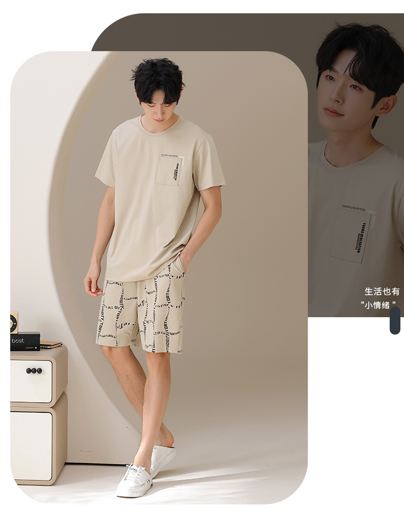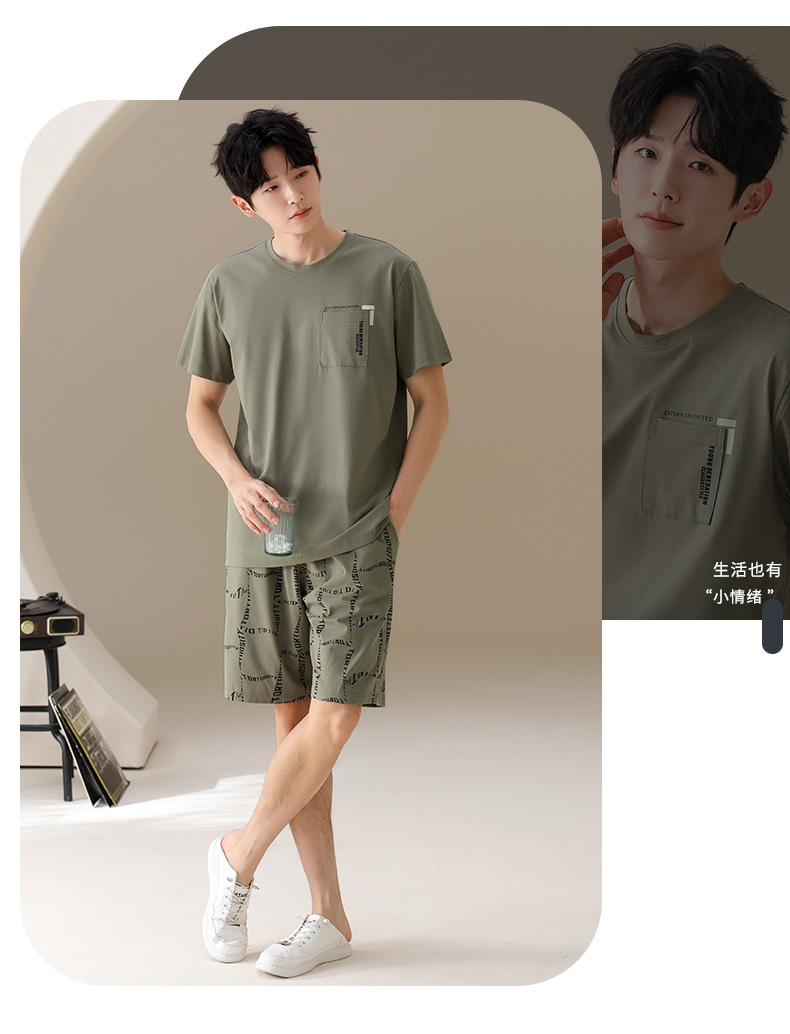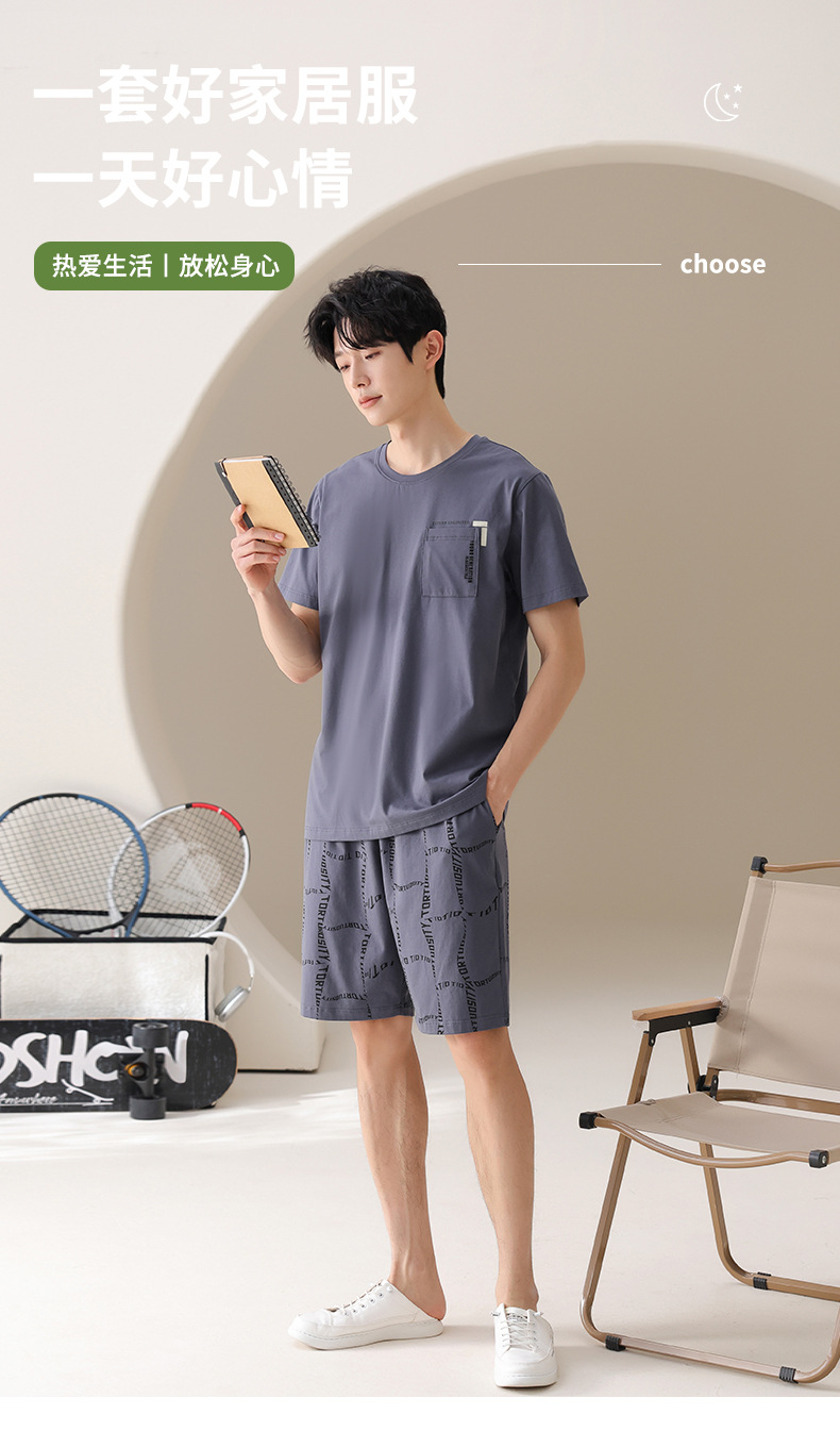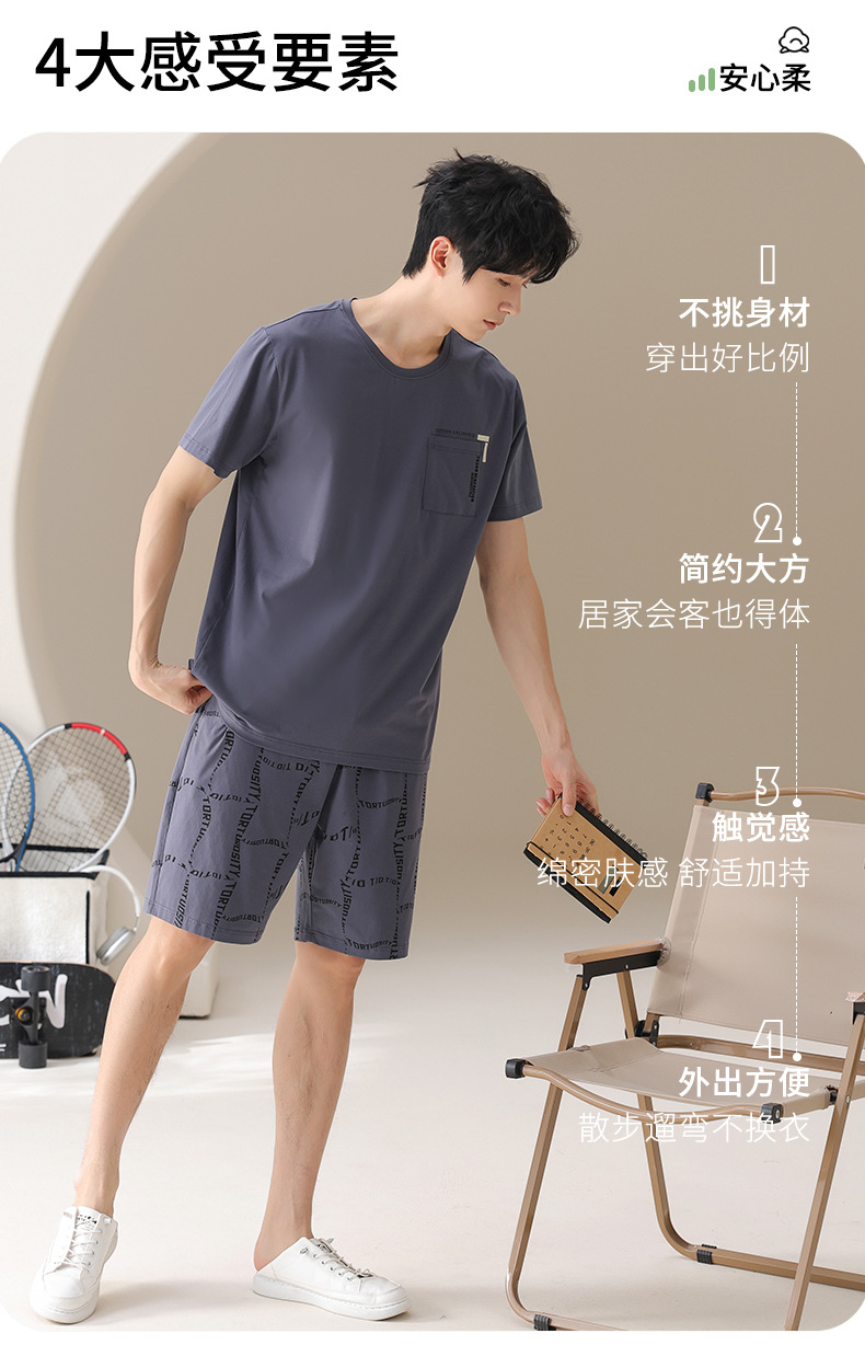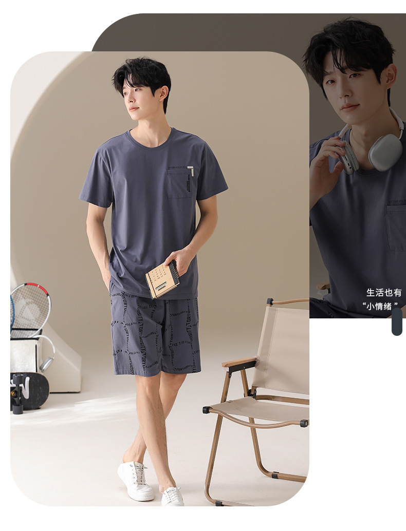 잠옷 남성 여름 얇은 순면 반팔 반바지 대형 웨어러블 슈트 여름 면 남성 가정복스토어 가기