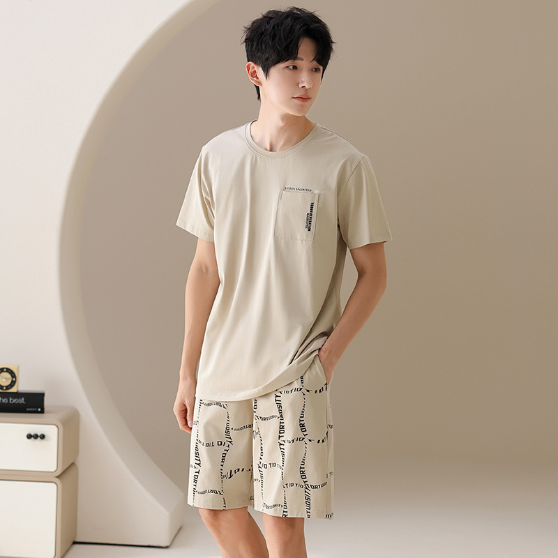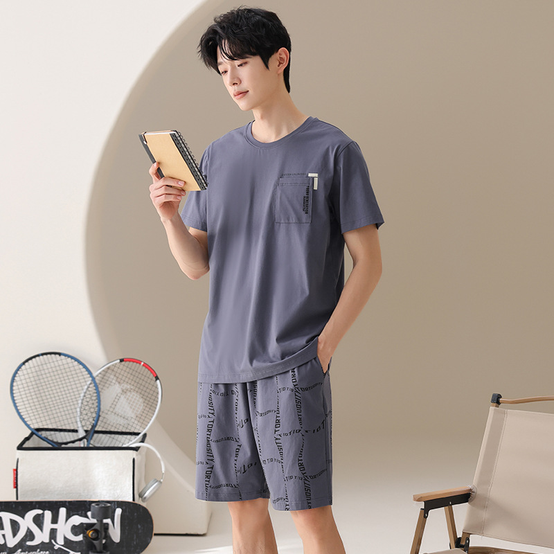 잠옷 남성 여름 얇은 순면 반팔 반바지 대형 웨어러블 슈트 여름 면 남성 가정복
