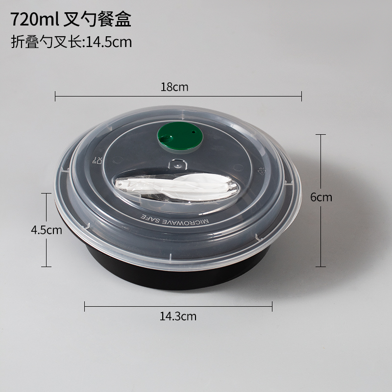 • 720ml 검정색 원형그릇+뚜껑+숟가락과 포크 150세트