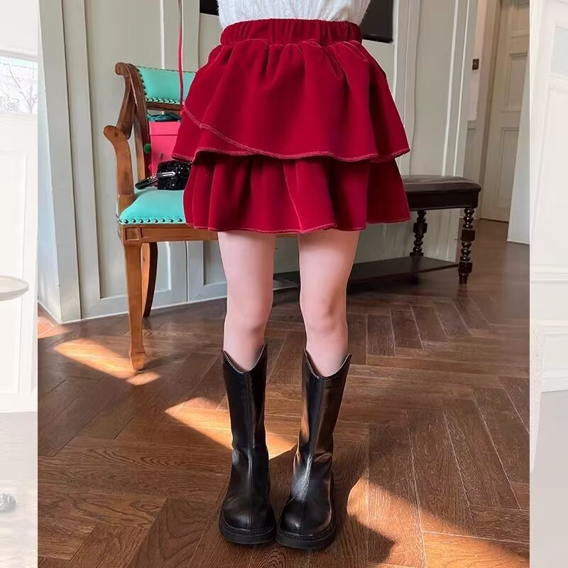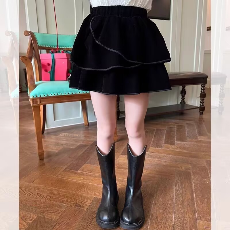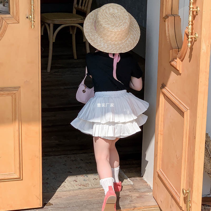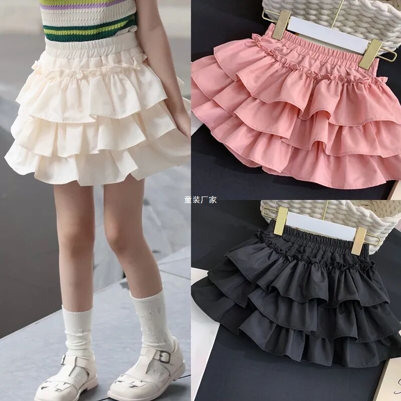 새로운 소녀 스커트 여름 2025 새로운 서양식 어린이 케이크 그룹 작은 소녀 짧은 스커트 퍼피 스커트 공주