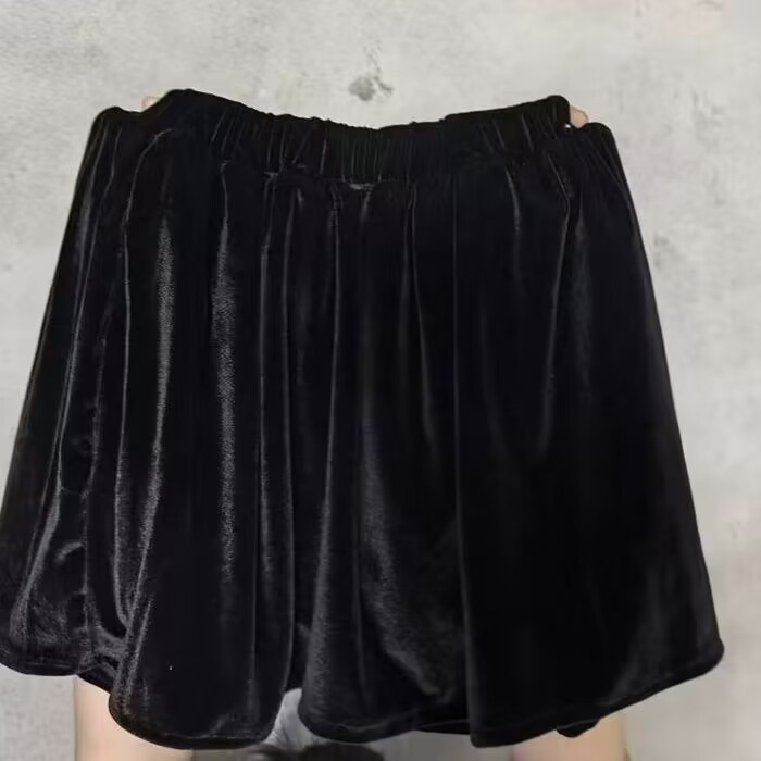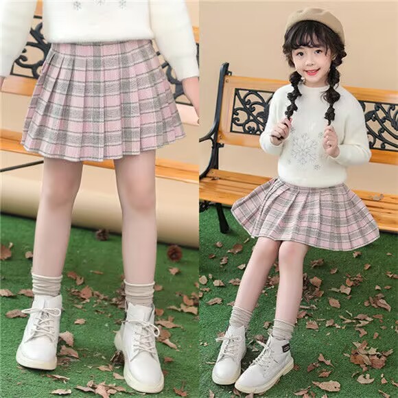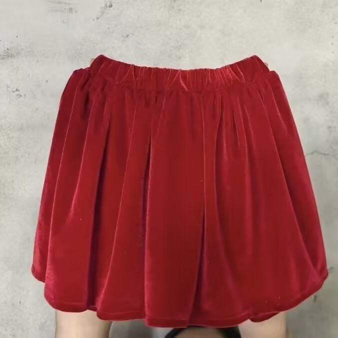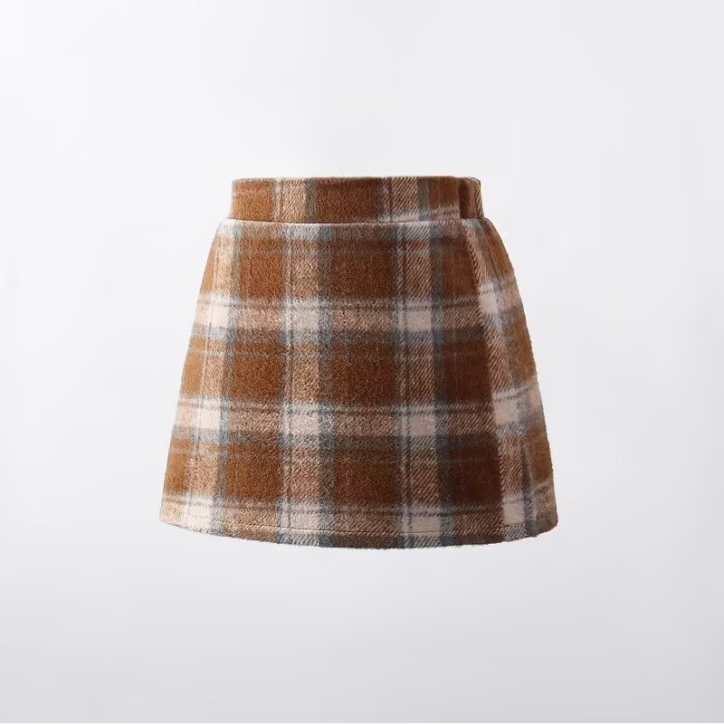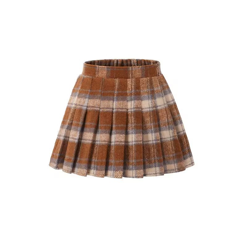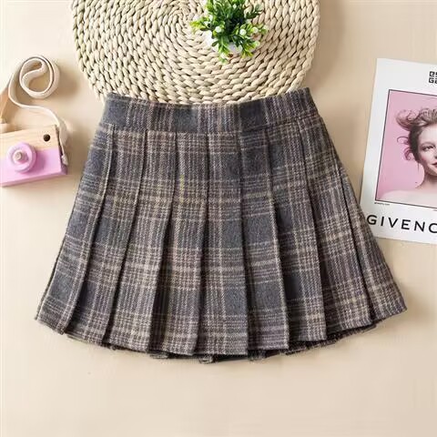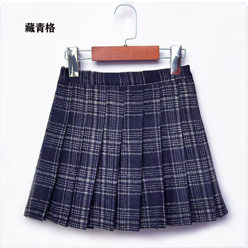 • 레트로 레드 체크 무늬 울 플리츠 스커트