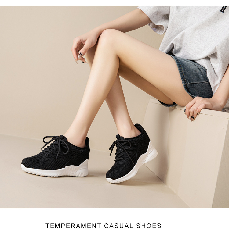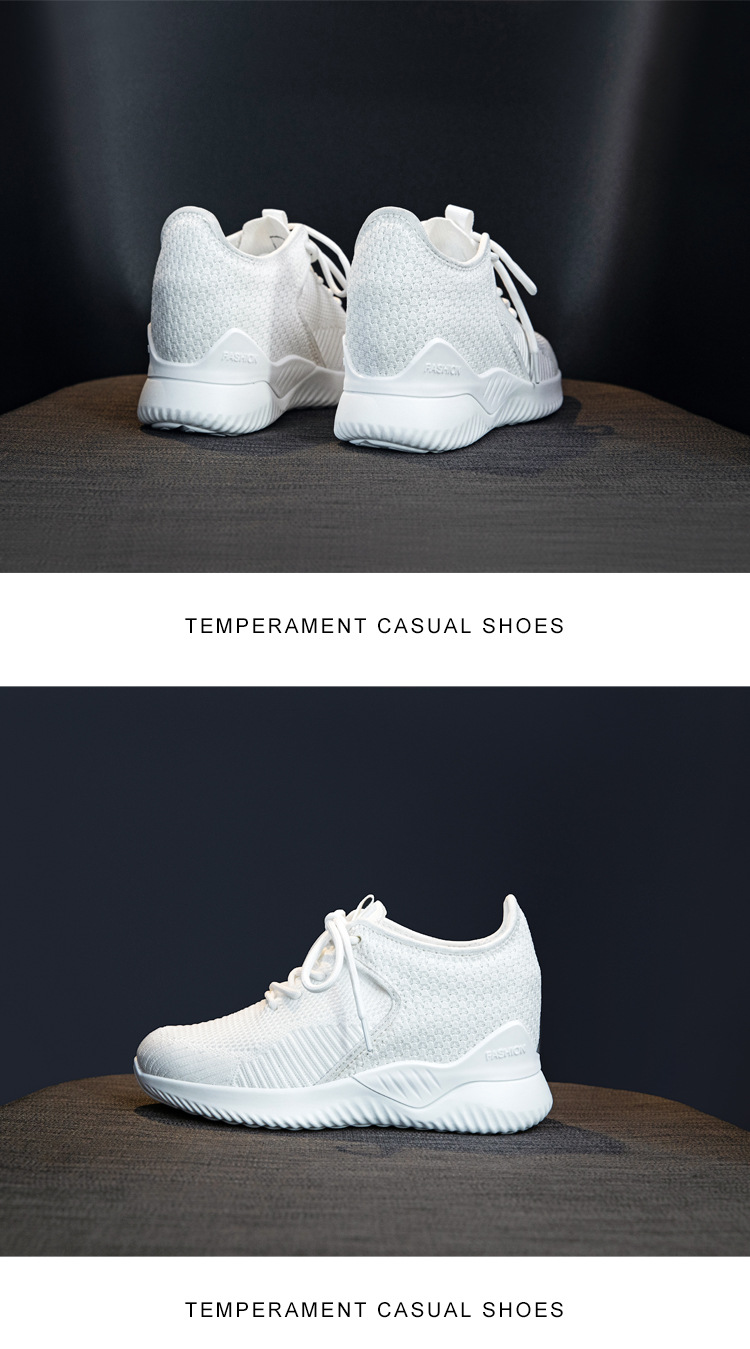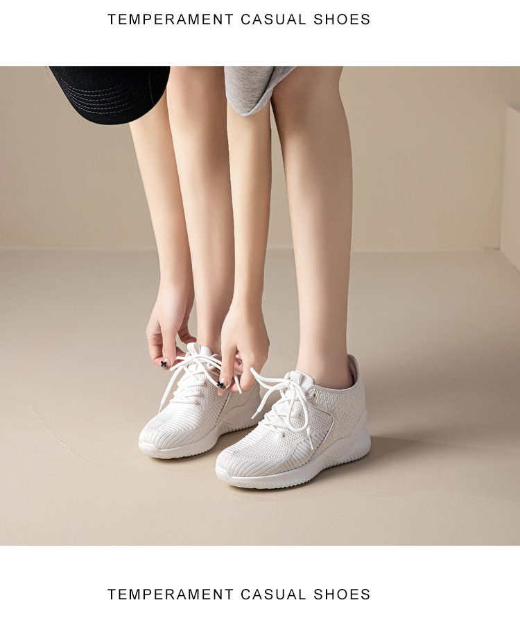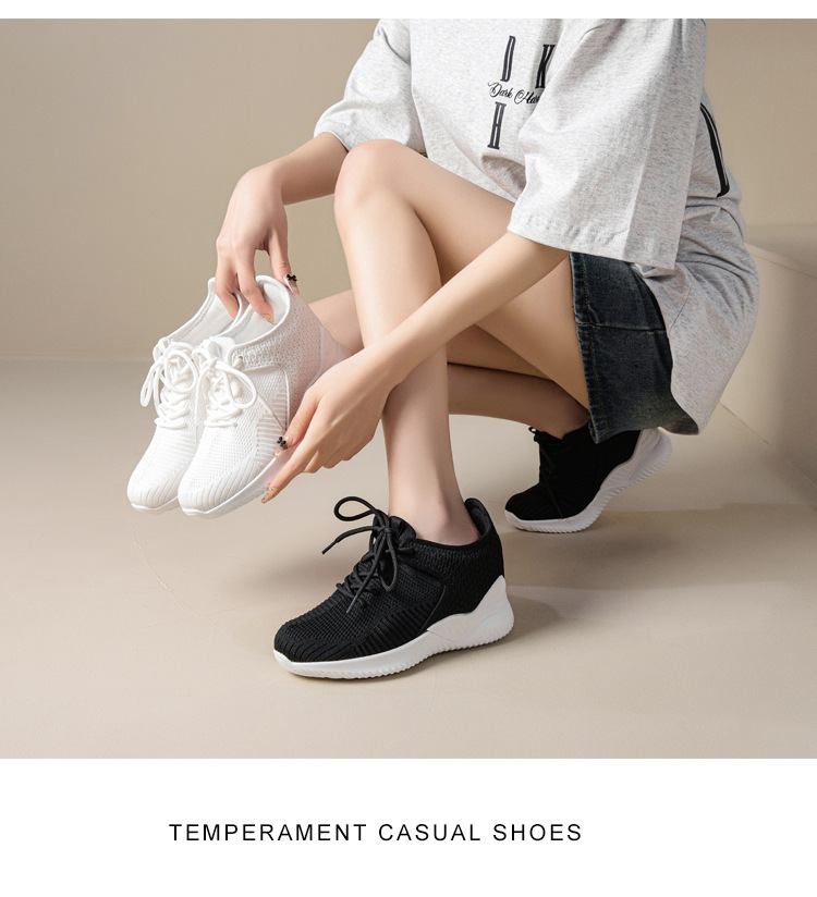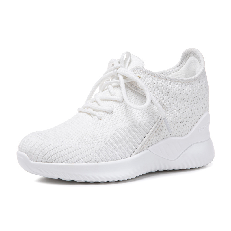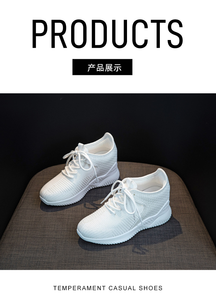 작은 여성 신발 2025 봄 새로운 비행 짠 두꺼운 밑창 흰색 신발 여성 플랫폼 올 매치 캐주얼 내부 높이 신발스토어 가기