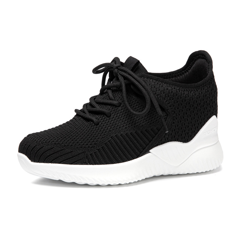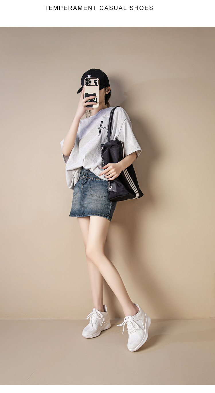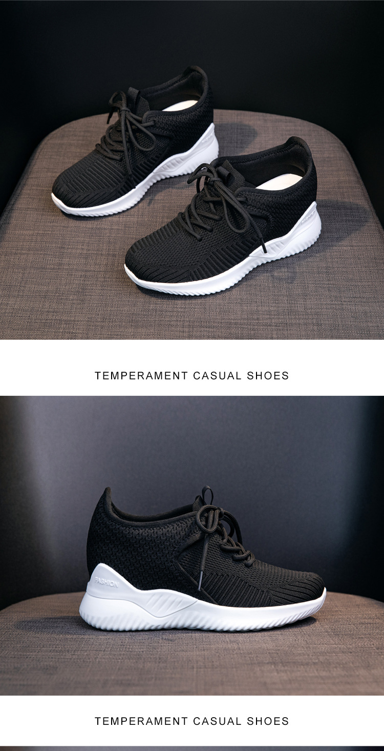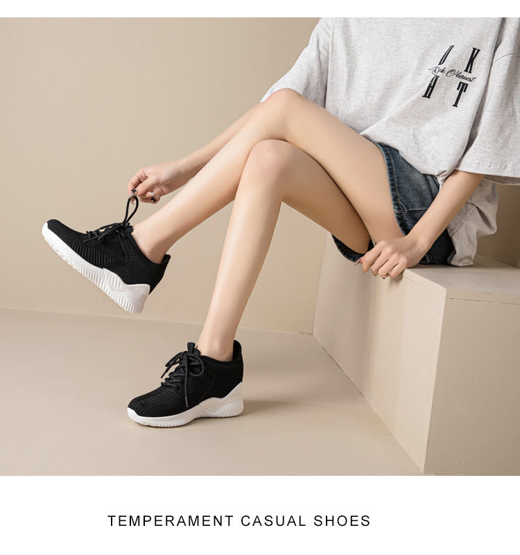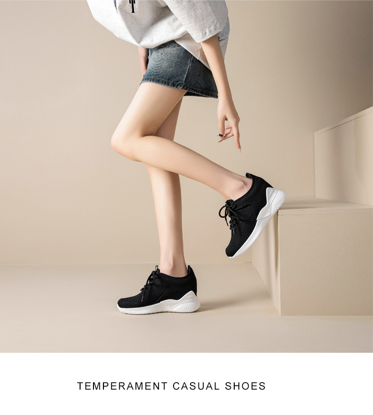 작은 여성 신발 2025 봄 새로운 비행 짠 두꺼운 밑창 흰색 신발 여성 플랫폼 올 매치 캐주얼 내부 높이 신발스토어 가기