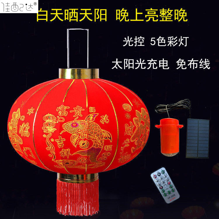 태양 큰 등불 방수 붉은 빛 다채로운 빛 새해 봄 축제 안뜰 빛나는 장대 랜턴 축하