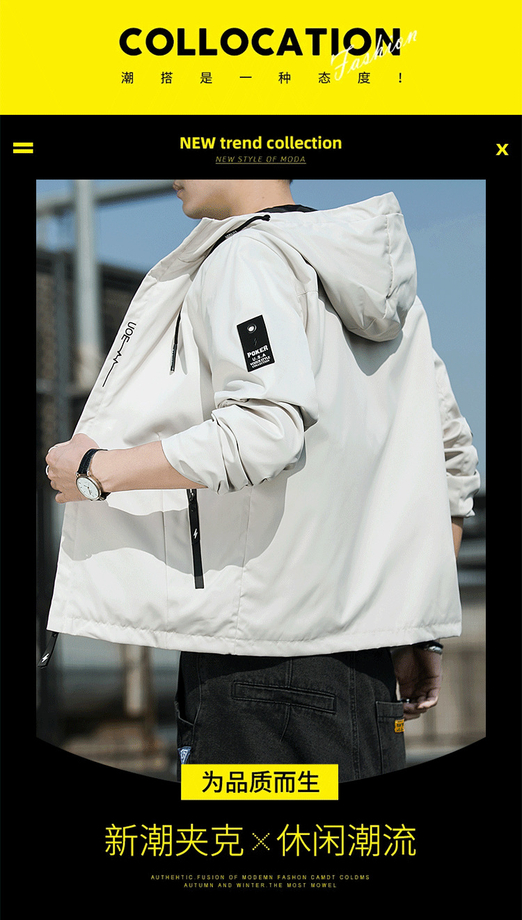 남성 자켓 봄과 가을 새로운 패션 재킷 느슨한 캐주얼 작업복 후드 재킷 의류 블랙 없음